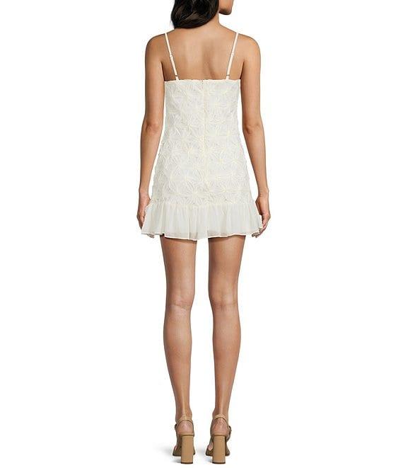 Storia 3D Floral V-Neck Spaghetti Strap Ruffle Hem Dress