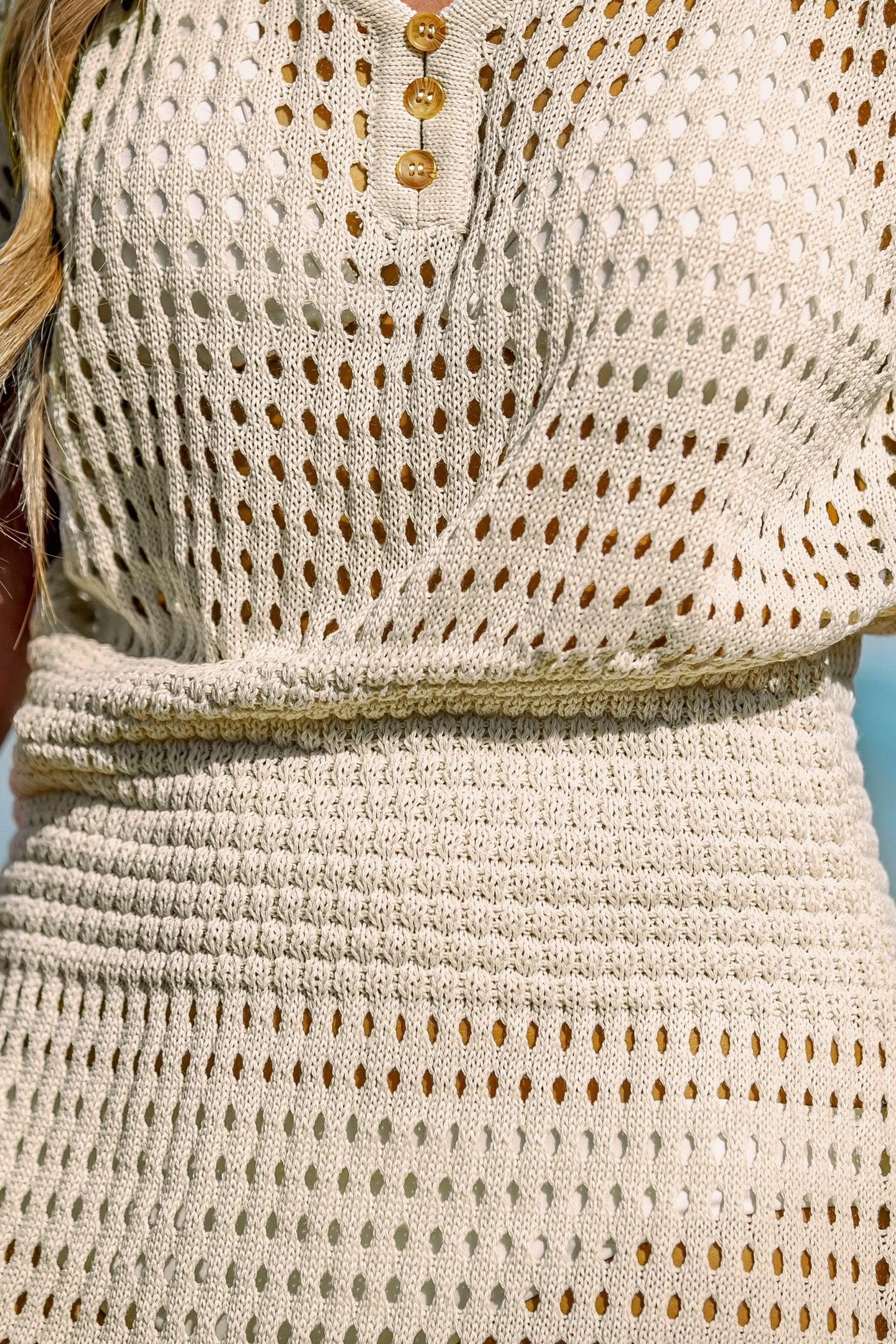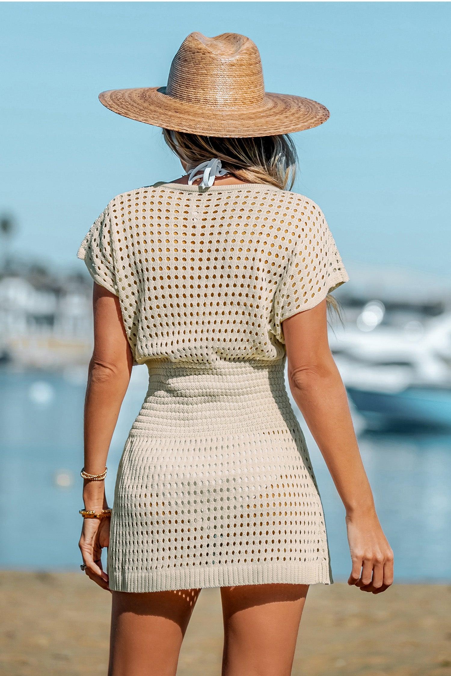 Make a statement in this knit cover-up dress featuring a V-neckline, half-button placket, short sleeves, cutouts, a mini hem, and fit and flare silhouette.Product Code: CAA07B3B014GGFeatures: Knit V-neckline Buttons Short sleeves Mini Cutouts Material & Care Regular wash Materials: 100% Polyester