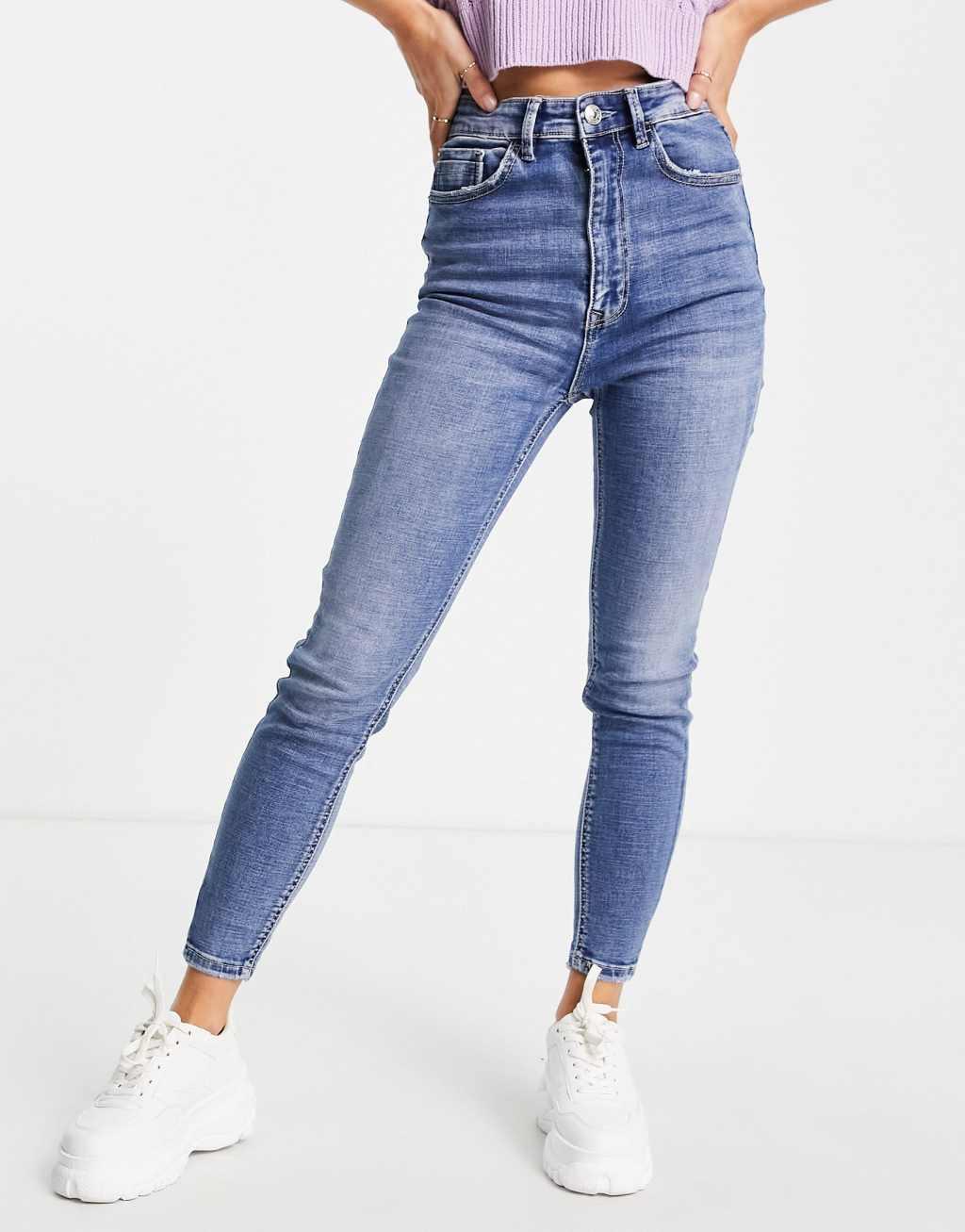 Stradivarius Petite super high waist skinny jean in medium blue