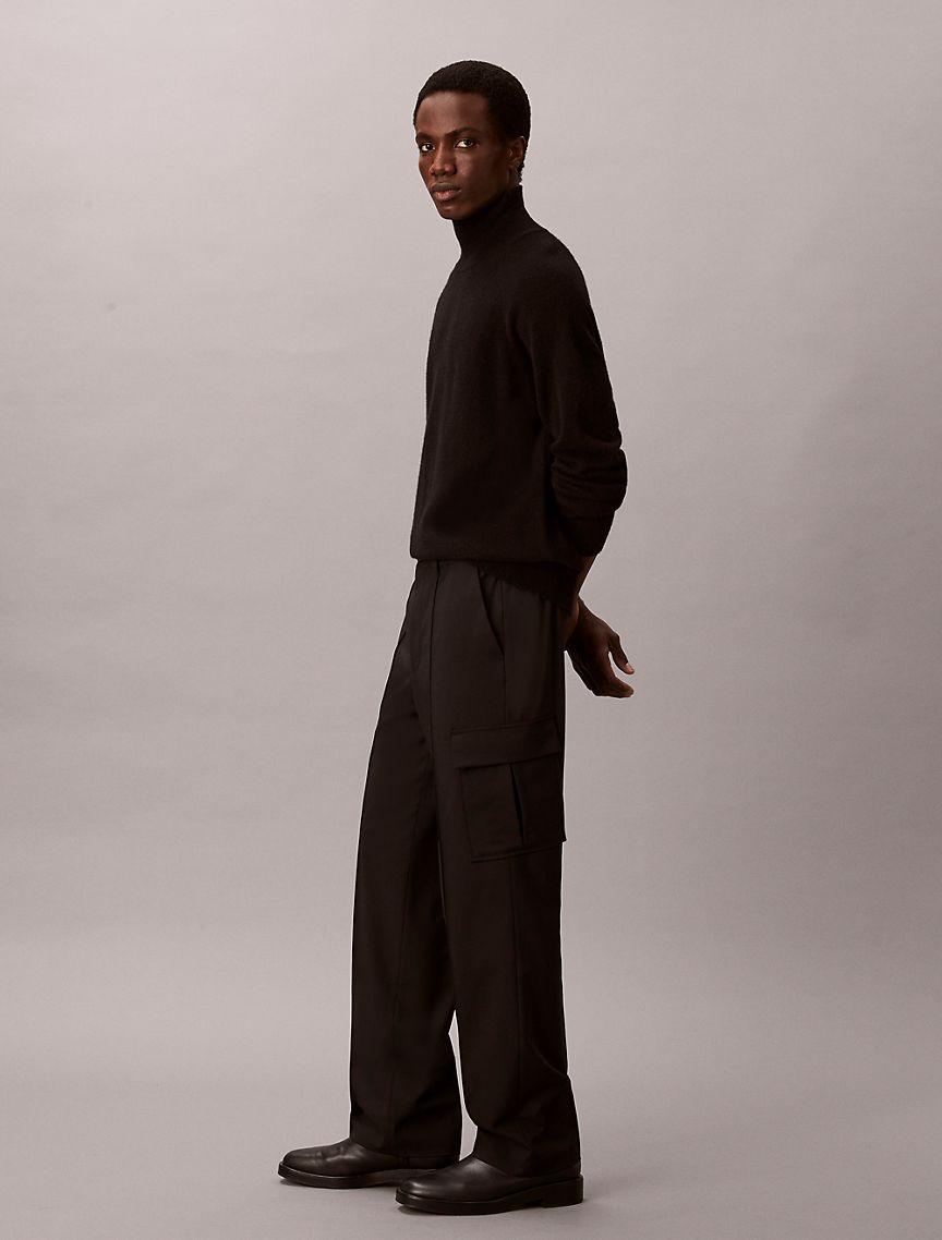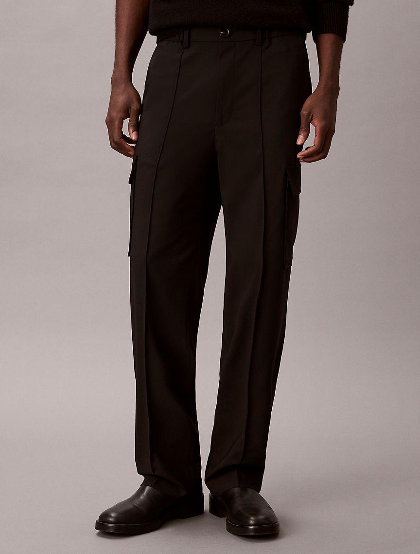 Straight Bengaline Wool Blend Cargo Pants