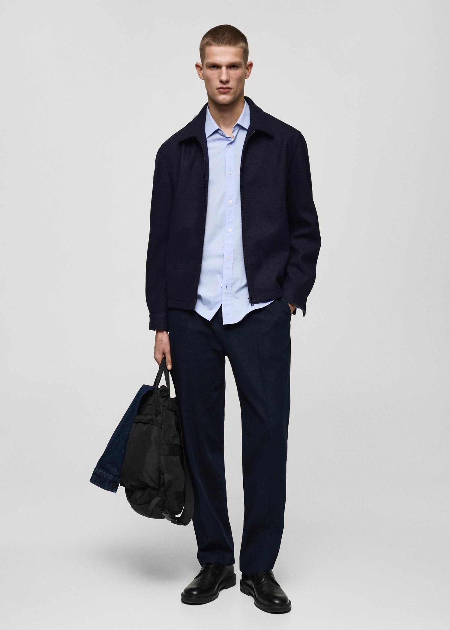 Straight fit. Cotton/Tencel blend fabric. Adjustable inner drawstring waist. Belt loops. Ironed stripe detail at front and back. Detail of front calipers. Two front pockets. Two welt pockets on the back. The model is 6'3" and is wearing a size 42. Inside leg measurement 30.87 in. Side length 42.91 in