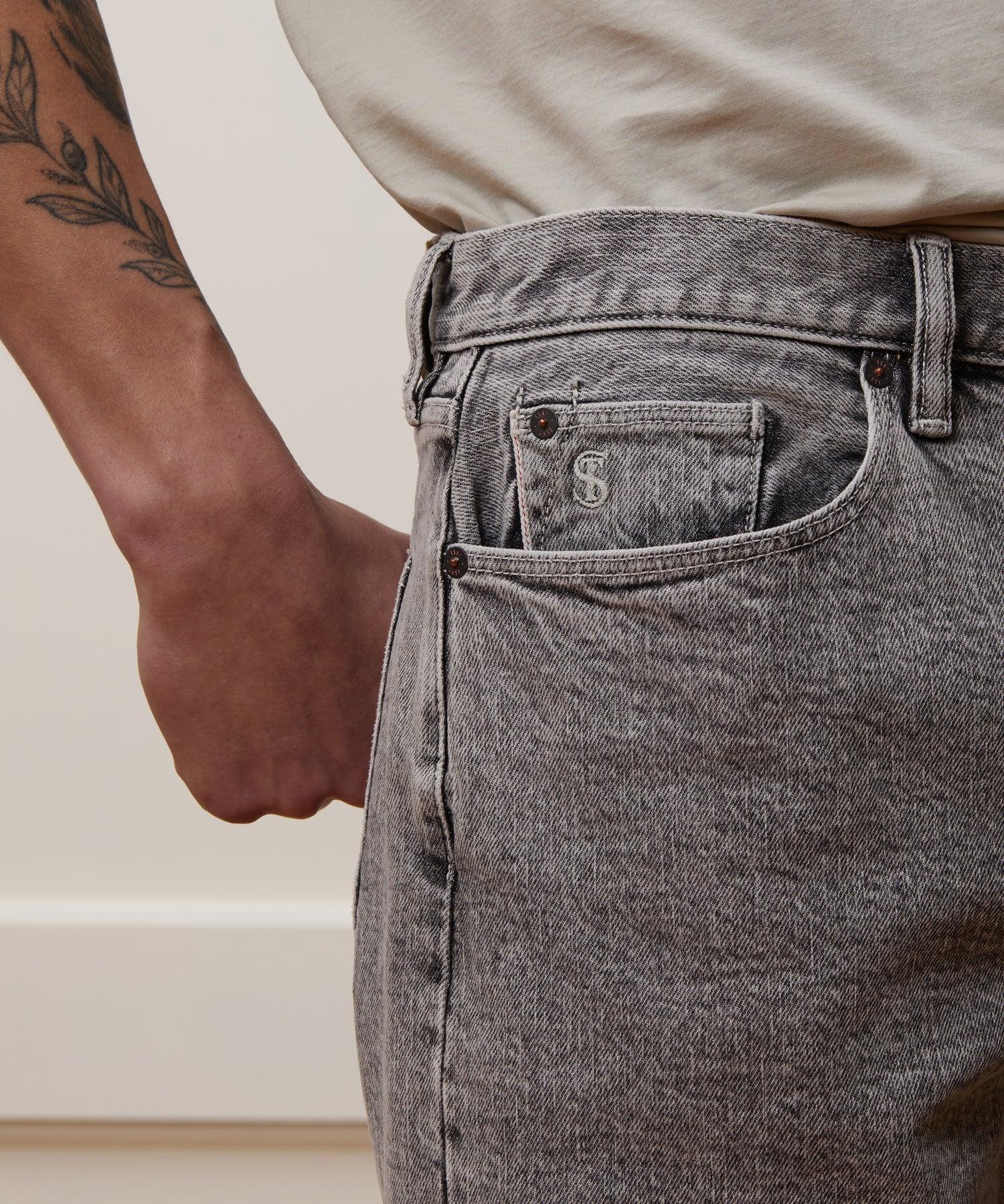 Our Selvedge jeans are loaded with quality, vintage-inspired details, including a shank button fly and oxidized rivets. There are also genuine selvedge outseams; when you turn up your cuff, you’ll spot that giveaway red ticking at the edge. Our Vintage fit is the Goldilocks between Slim and Relaxed: mid-rise, straight through the leg, totally classic. All told it’s about an inch bigger through the thigh, knee and rise than Slim. Gray Acid Wash is a bleached-out black-and-white twill — think refined take on the 80s classic, set off by white stitching. 98.5% Cotton 1.5% Elastane 12.5 oz Denim Vintage Fit Leg Opening (Based on Size 32W): 16.5” Shank Button Fly Genuine Selvedge Classic 5-Pocket Construction Oxidized Rivets Chain Stitching at the Coin Pocket Made in Vietnam Machine Wash Cold Style JE214754
