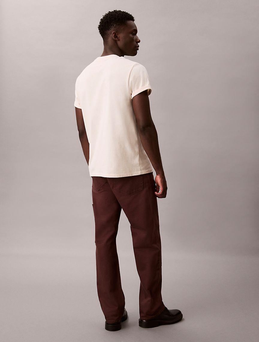 Calvin Klein for men. Refined classics for a curated wardrobe. Minimalist essentials in signature silhouettes. Cut in a straight leg silhouette, these jeans feature a utility-inspired look. Made with a mid-rise waist and detailed with slip pockets at the back leg. Crafted completely from rigid cotton denim for a sturdy feel that will break-in over time.