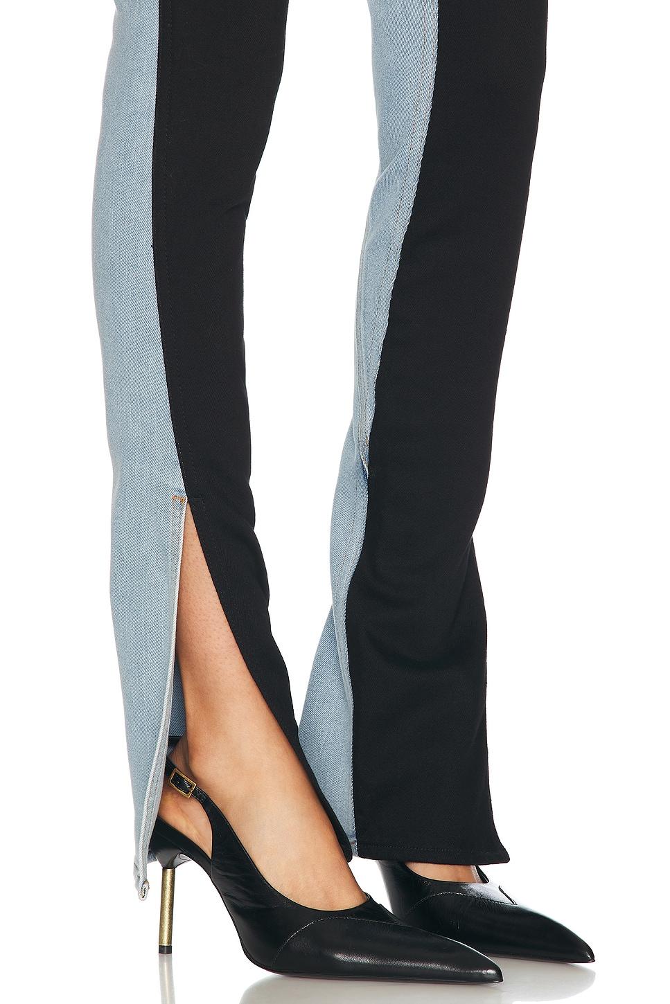 jeansSelf 1: 72% cotton, 28% elastaneSelf 2: 98% cotton, 2% elastaneLining: 100% cotton / Made in Portugal / Dry clean only / Zip fly with button closure / 5-pocket design / Logo patch at back / Two-tone denim fabric design with slits at hem / Our Style No. MUGL-WJ20 / Manufacturer Style No. 24F6PA0445211 / Model is wearing size 26.