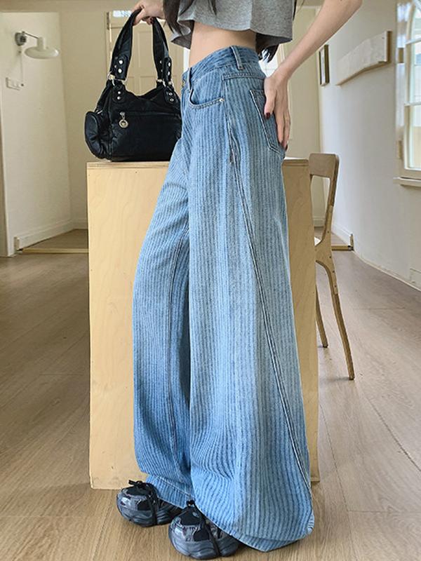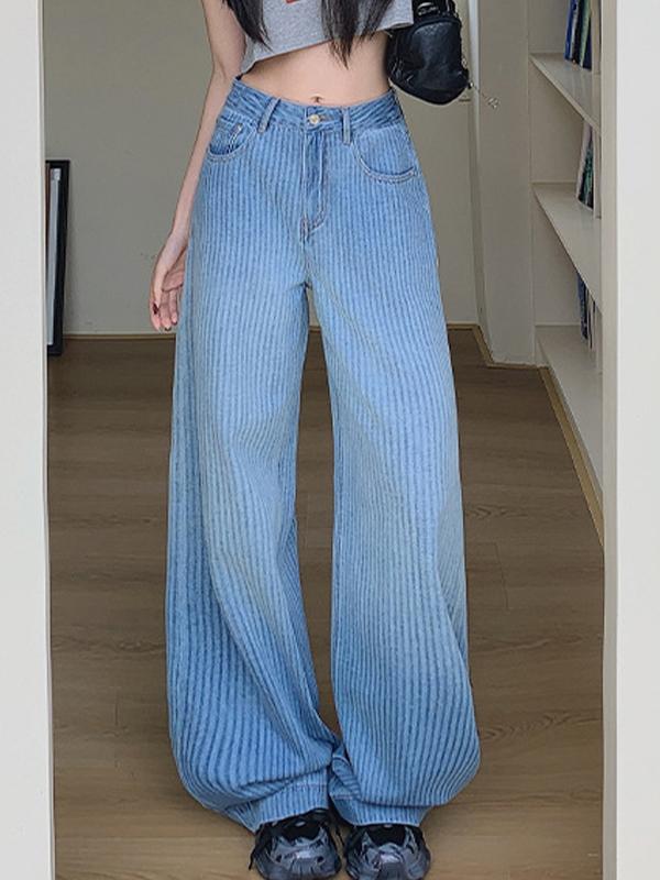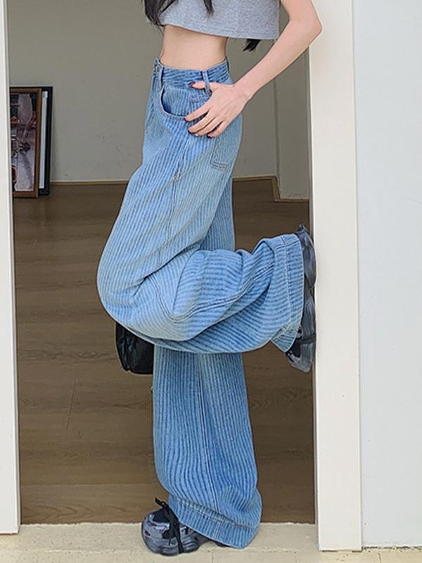 Boyfriend Wide Leg Slightly Stretchy High Rise Light Wash Jeans Female