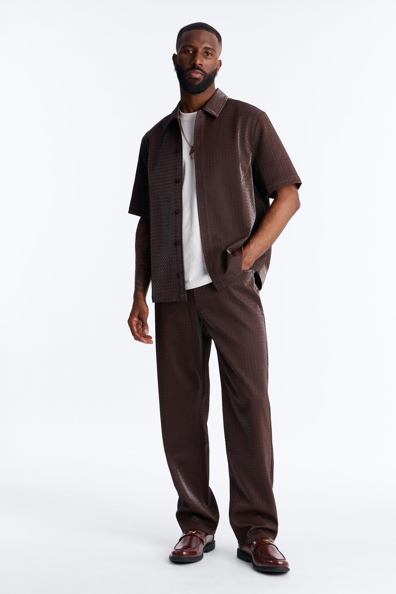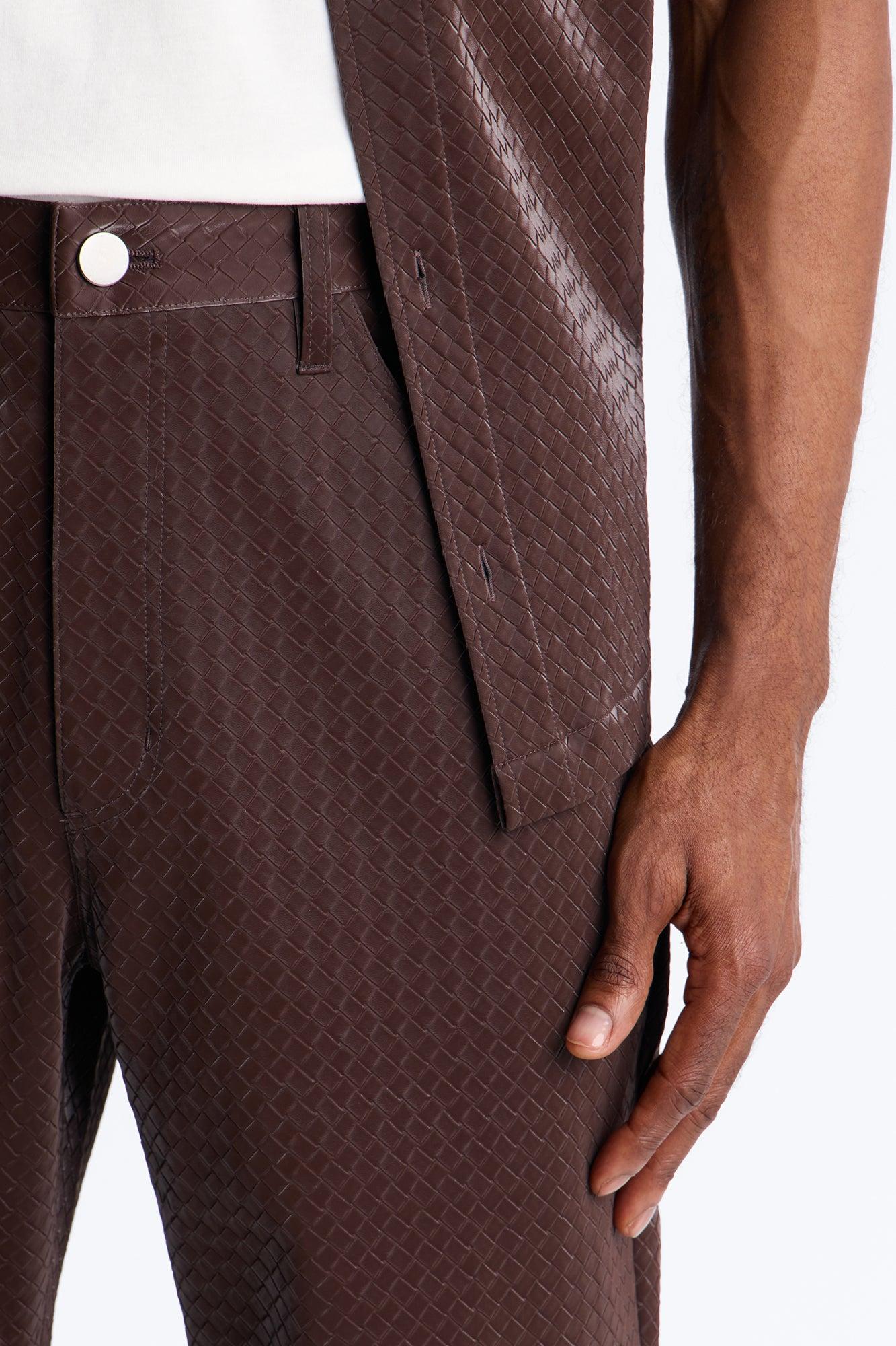 Straight Tisse Textured Faux Leather Pant - Brown