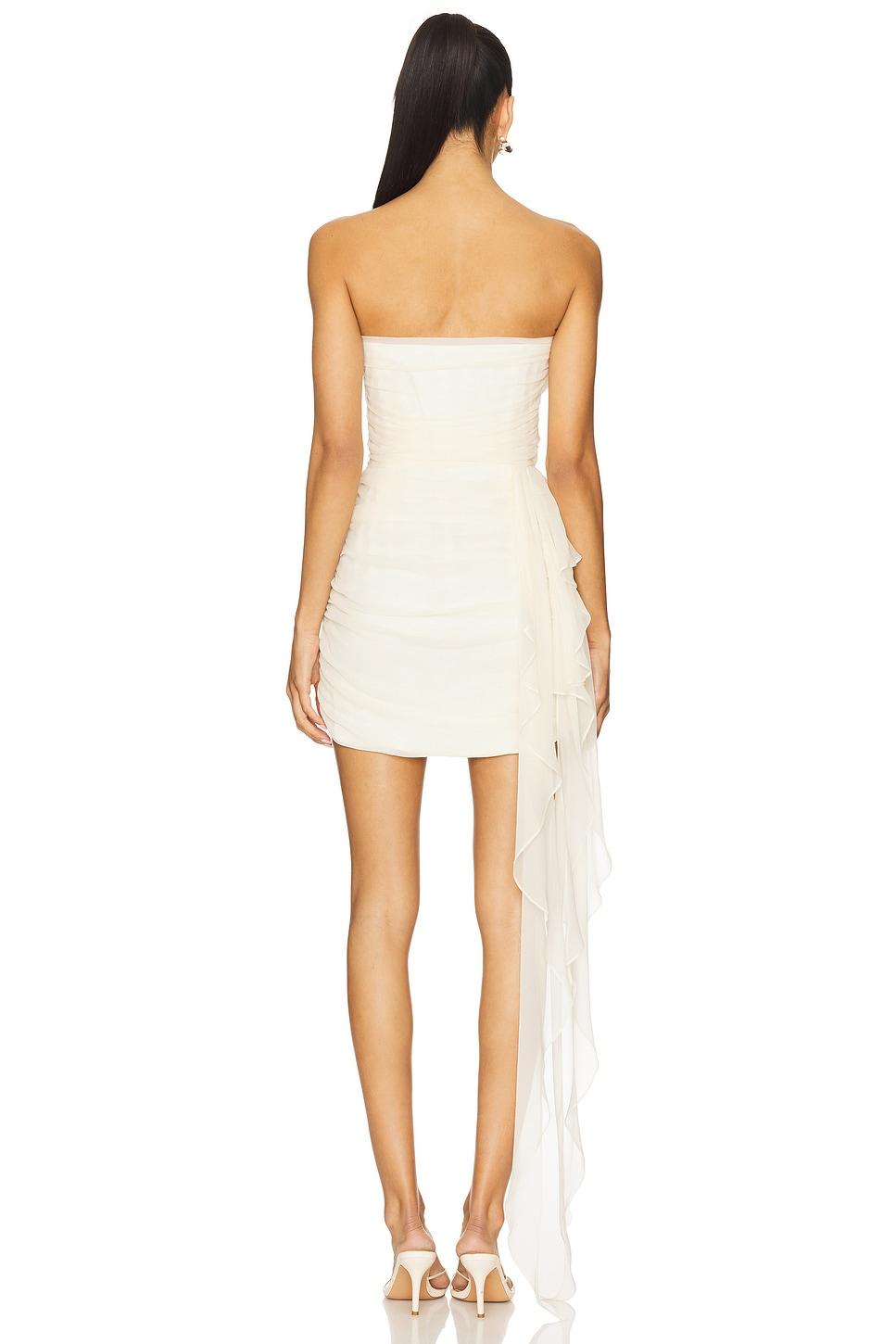 Crepe textile. Dry clean only. Fully lined. Hidden side zip closure. Ruched seams. Boned bodice. Midweight crepe fabric with drape accent. Neckline to hem measures approx 27" in length. Made in US. Revolve Style No. TSEI-WD138. Manufacturer Style No. TS9212.