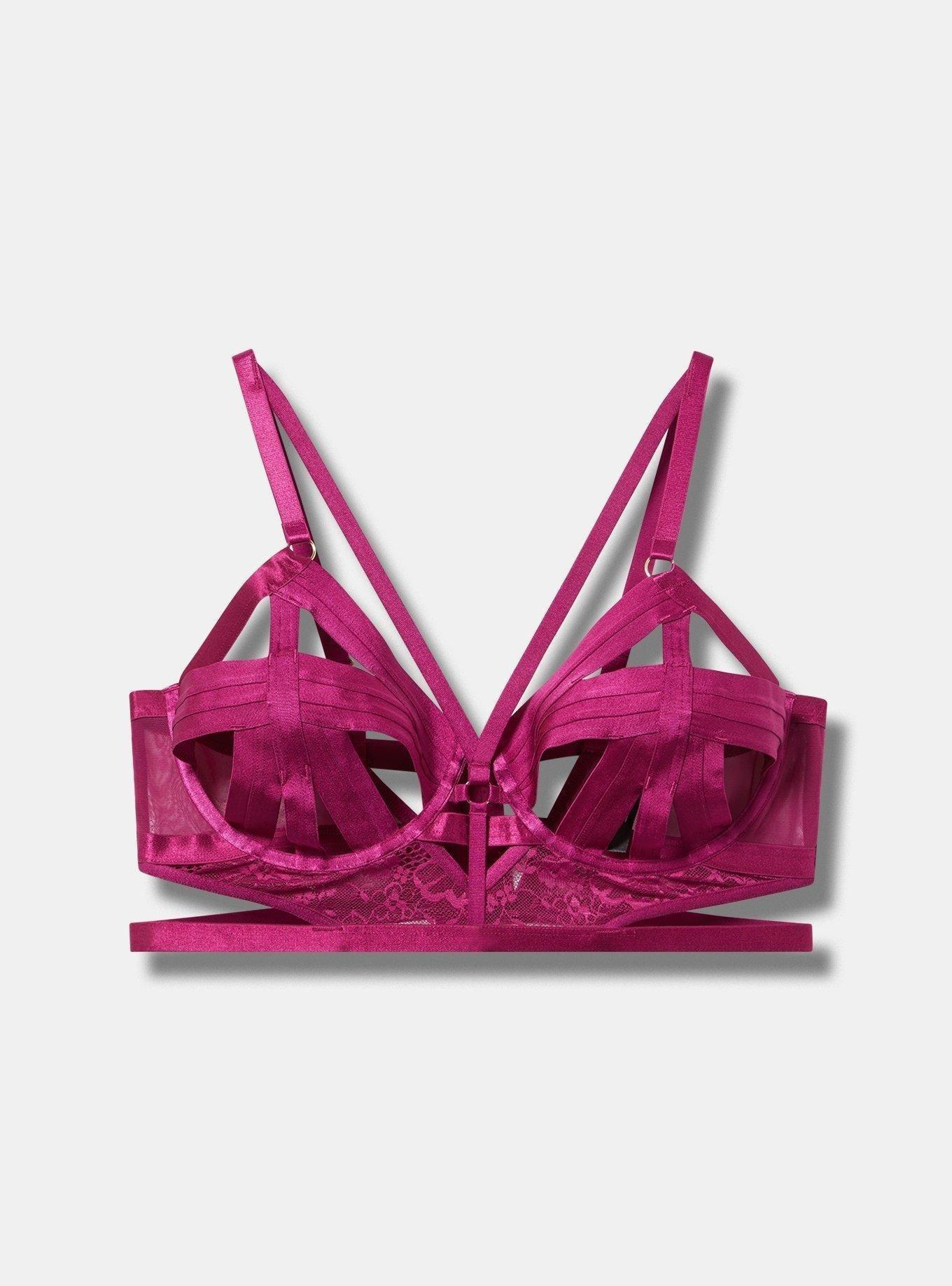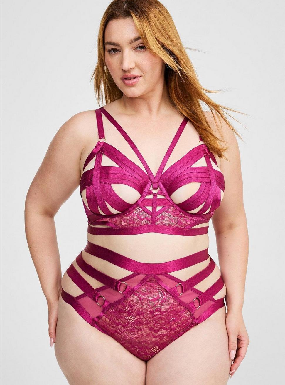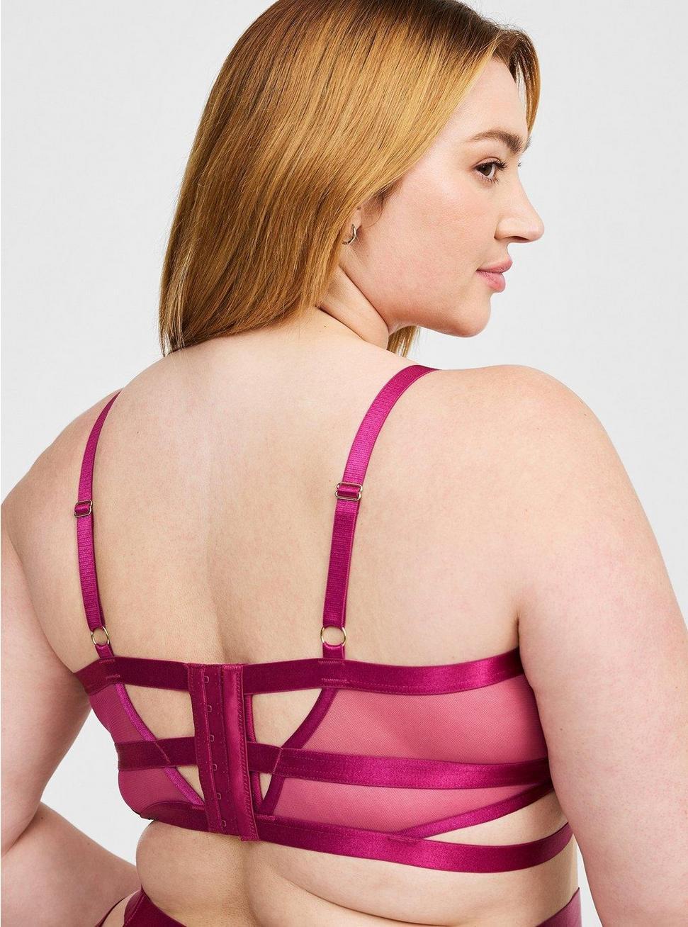 Matching style(s): Search 42165177FITLongline silhouette.Underwire cups.MATERIAL + CAREMesh knit fabric.82% nylon, 18% spandex.Hand wash cold. Line dry.Imported.DETAILSAdjustable straps.Strappy.Ring accents.Cut-out details at cups, back, and sides.Back hook-and-eye closures.