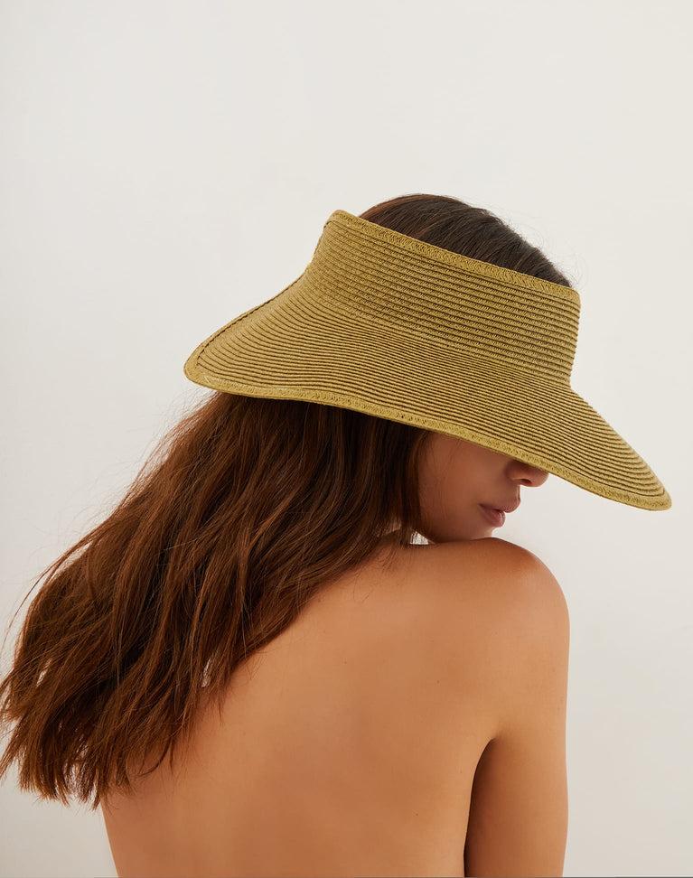 The ViX straw visor offers stylish sun protection, keeping you effortlessly chic from sunrise to sunset. Pair the visor with your favorite swimwear or use it to elevate your resort ensemble. Features: 2.4” H Brim 4.5” Fits head circumference: min 22.4” - max 25.5” Style# VIM25309