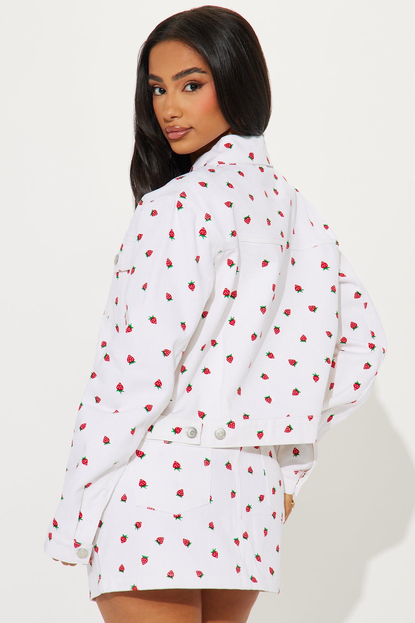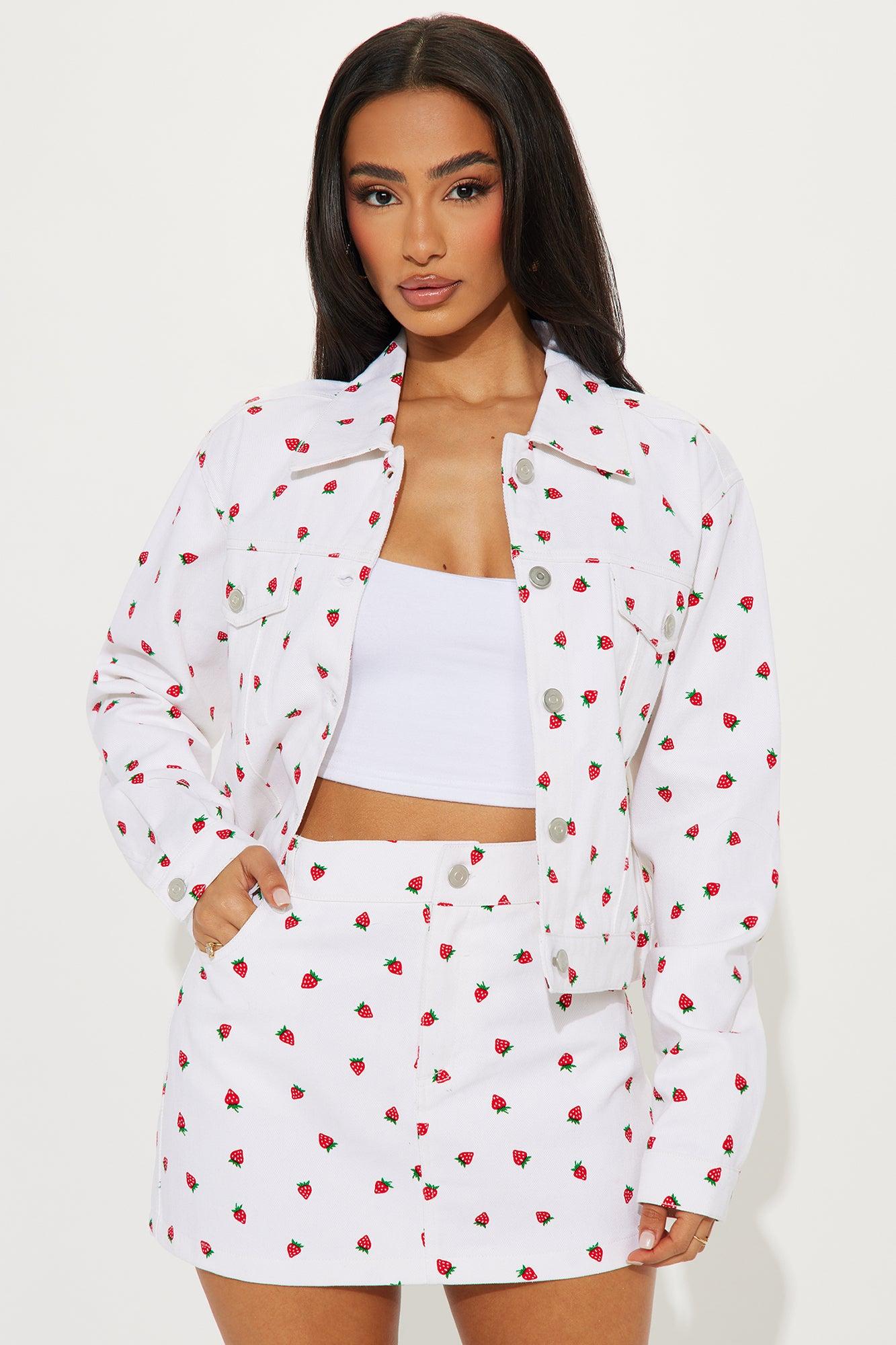 Available In White. Jacket And Mini Skirt Set Button Front Disclaimer: Print Placement May Vary Top: 100% Cotton Skirt: 100% Cotton Imported