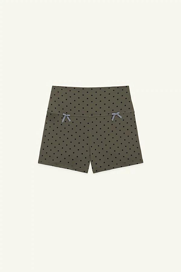 Super comfy, high waisted yoga shorts with a 3 inseam. Black and white polka dot print and gingham bow details. Content + Care Super soft and comfortable interlock material with moisture wicking and a UPF 50 finish. 73% GRS certified recycled polyester 27% elastane. Exclusive of trims and notions. Gentle machine wash cold with similar colors. Hang to dry. Do not iron, do not bleach. Made in China. Size + Fit Sits at the natural waist with a short 3 inseam. Model wears a size S. Strawberry Western Yuki 3 Bike Short in Oyster, Womens at Urban Outfitters