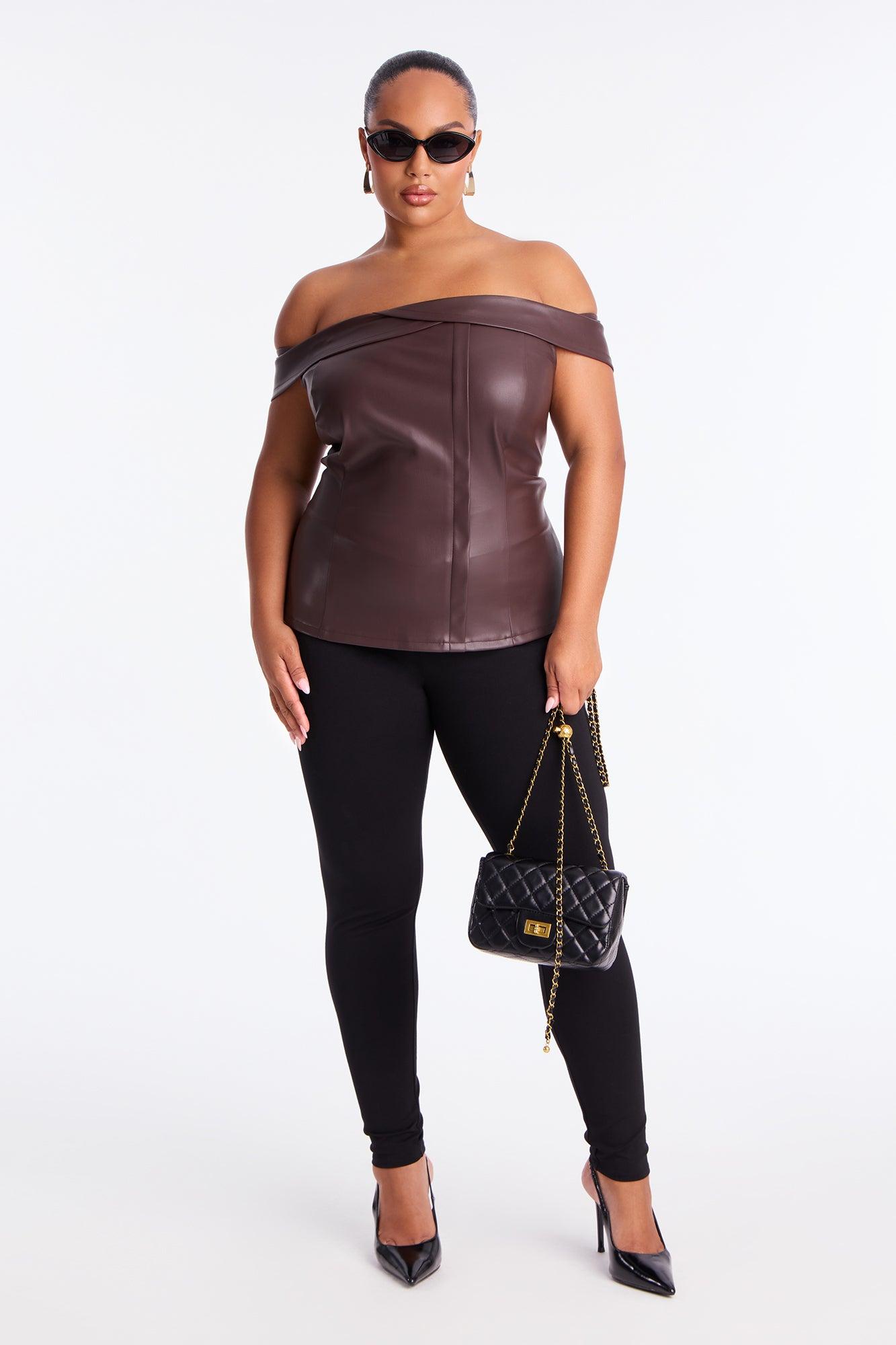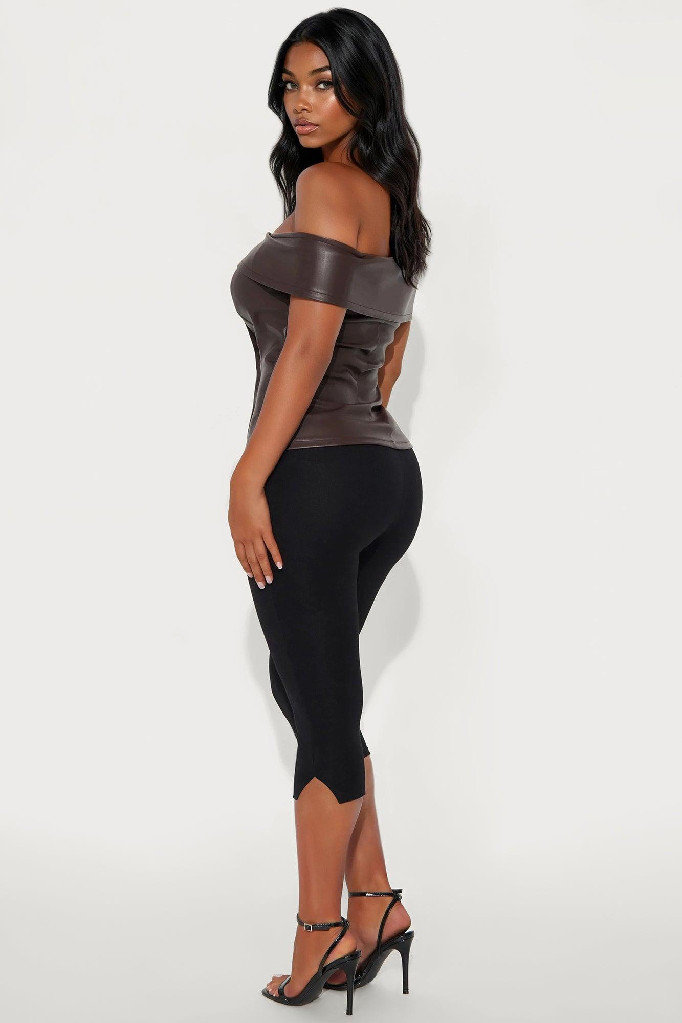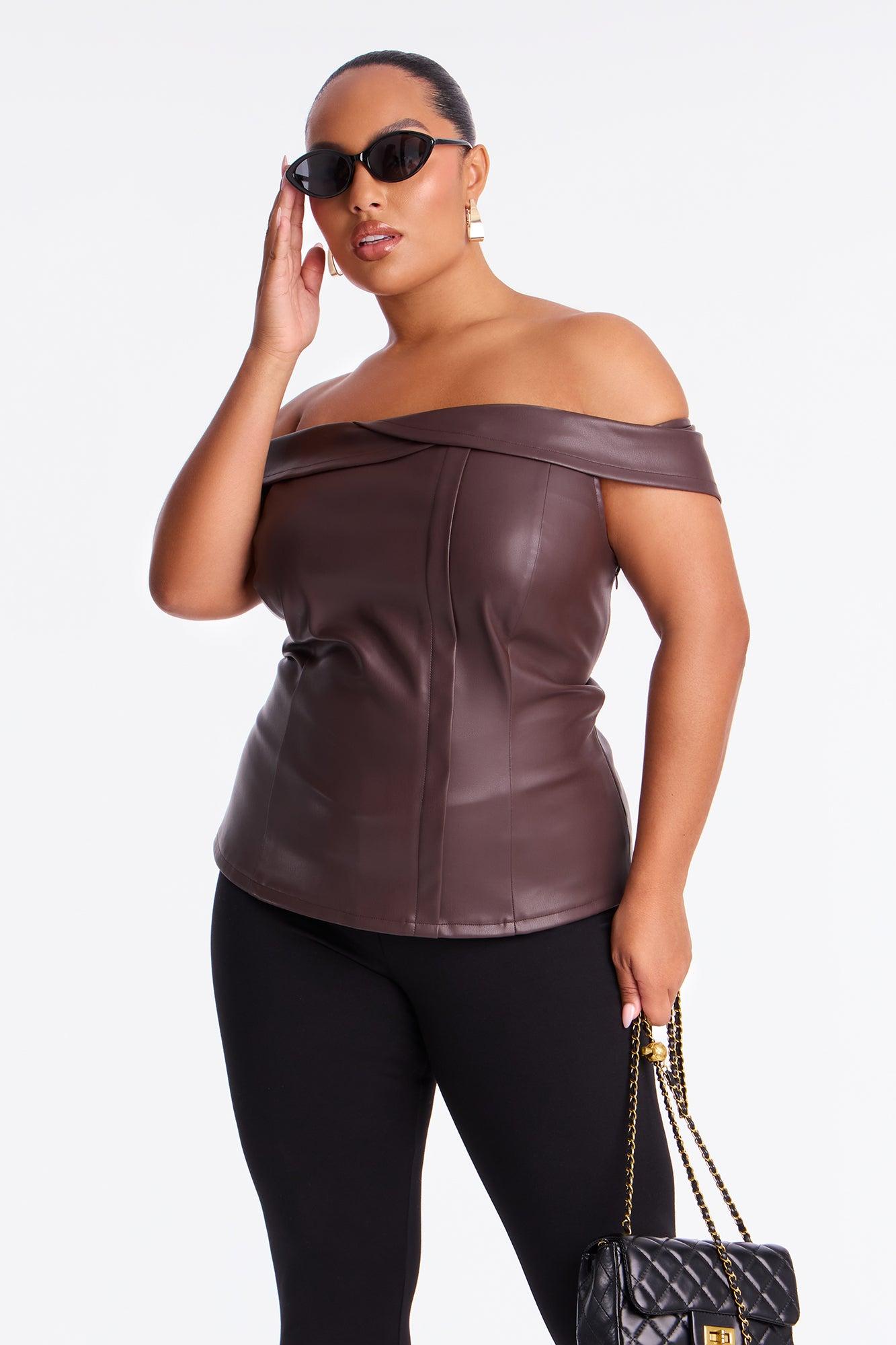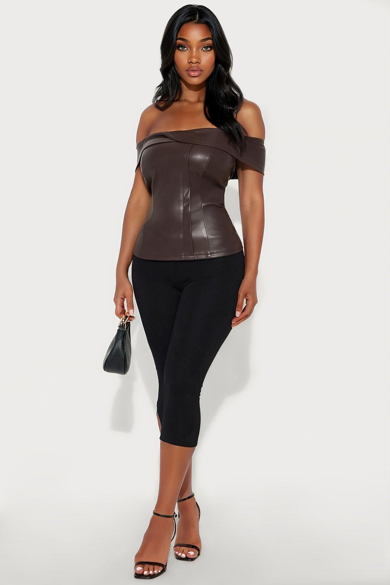 Street Chic Faux Leather Off Shoulder Top - Brown Female