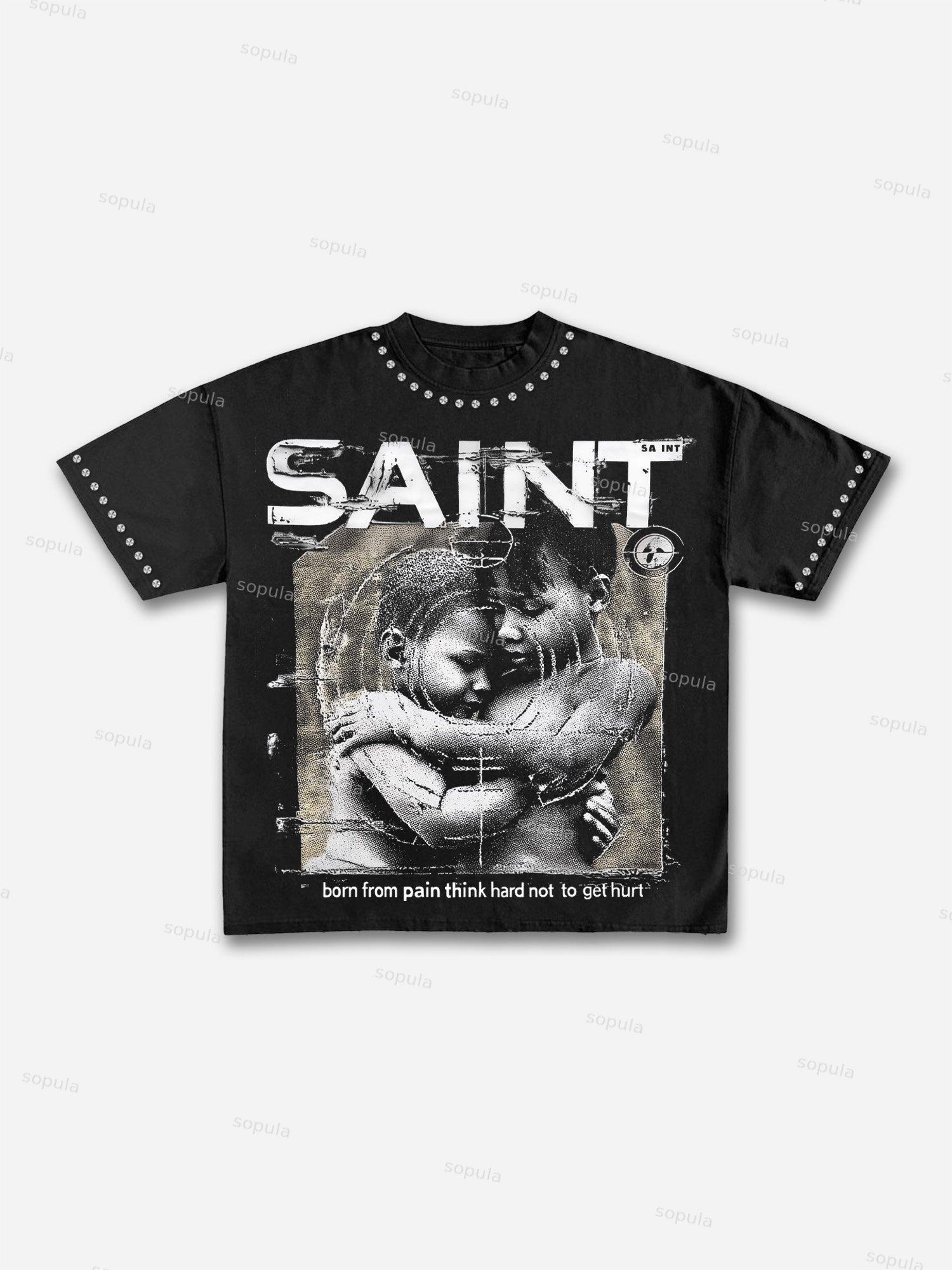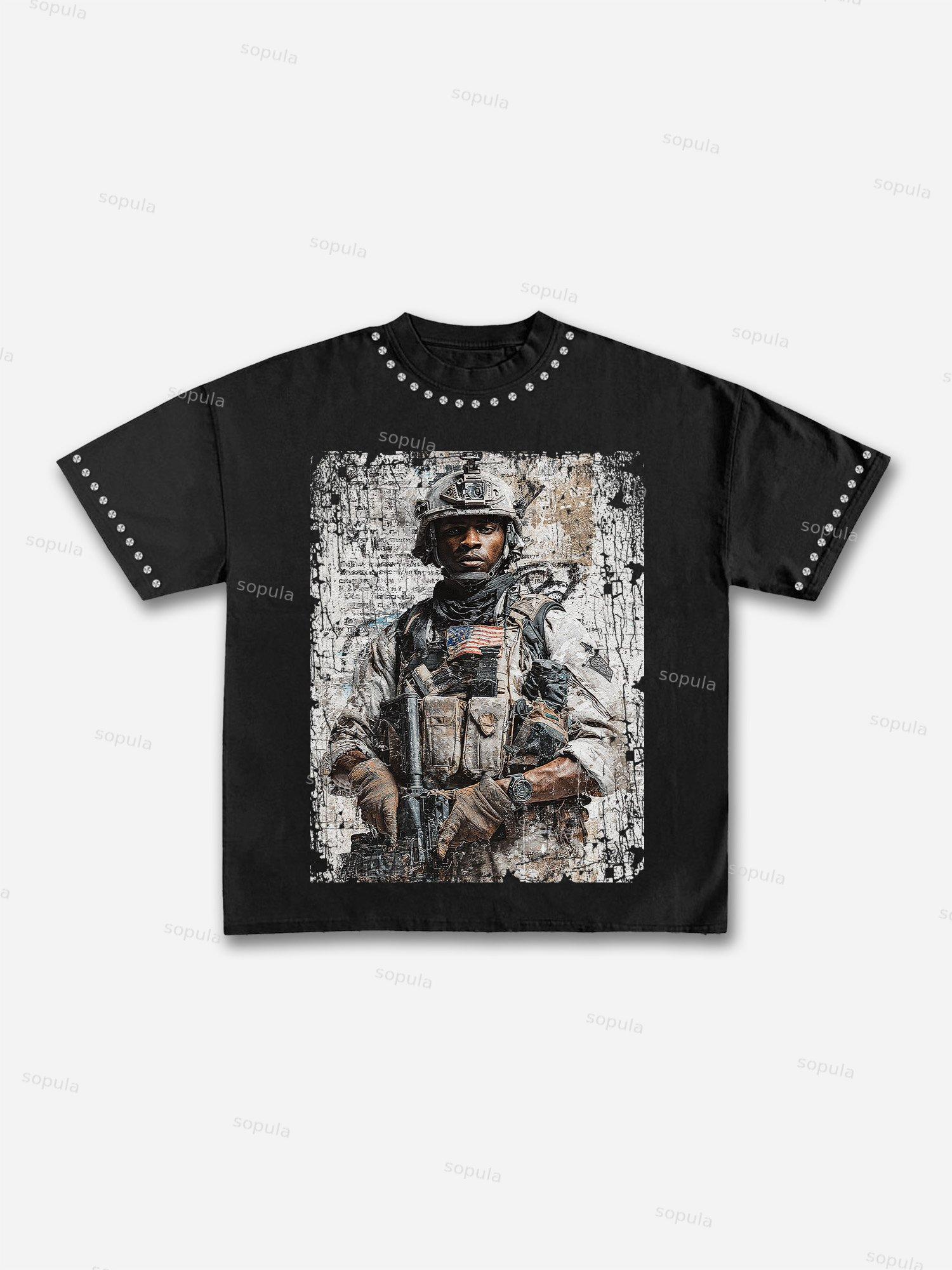 Street Soldier Graphic Rhinestone Print Cotton T-shirt