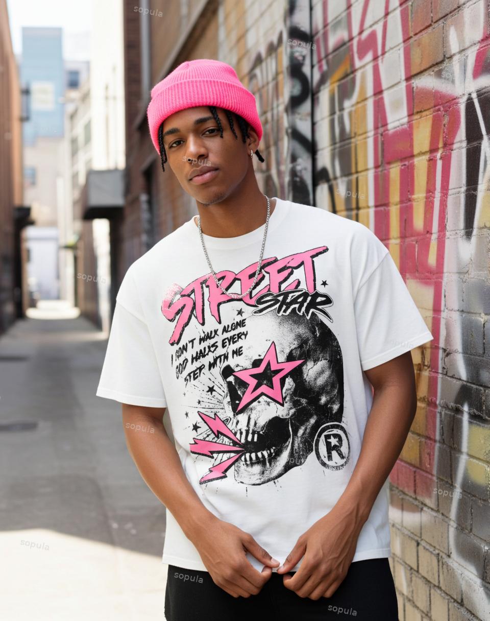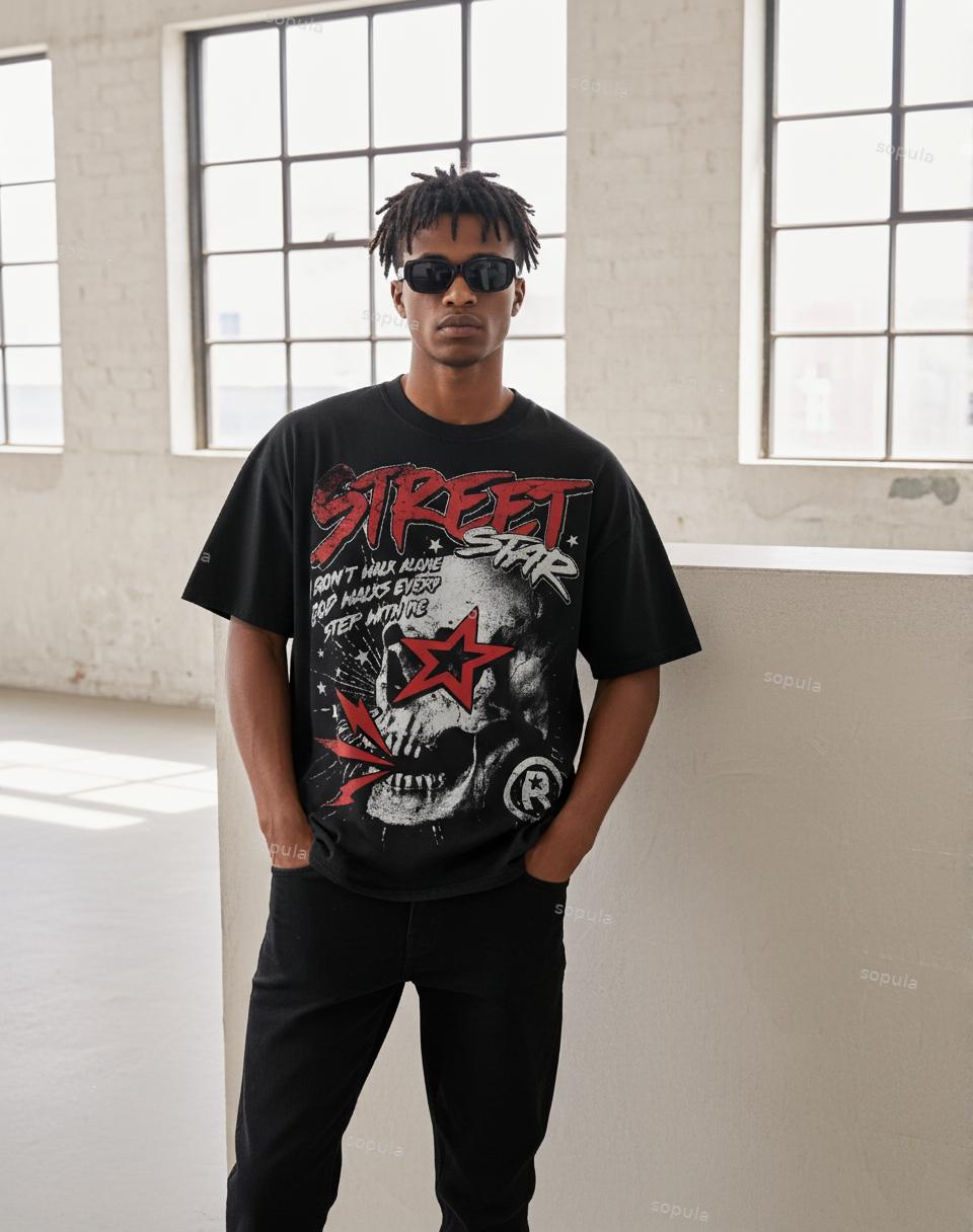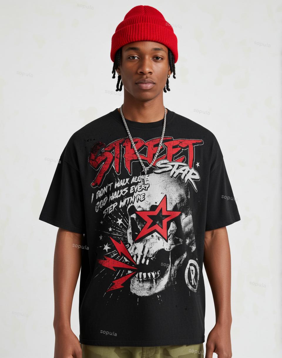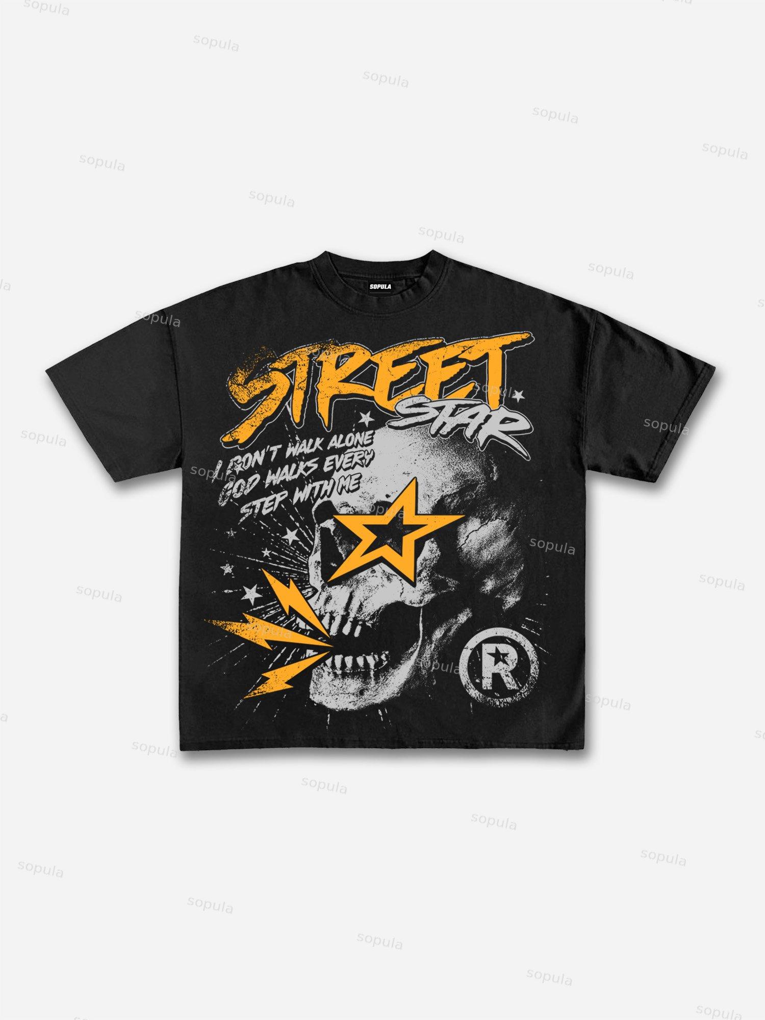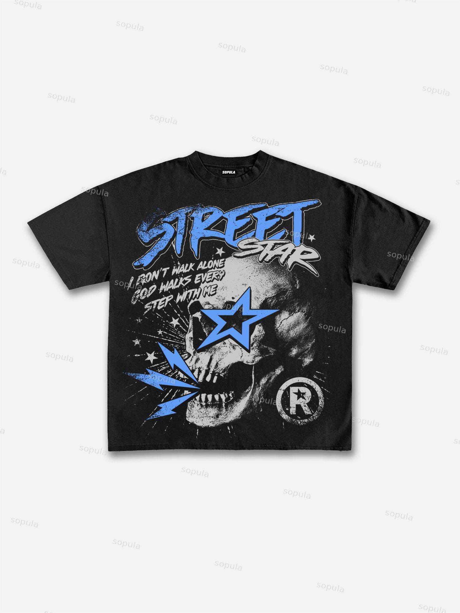 Street Star Skull Stars Vintage Graphic Cotton T-shirt