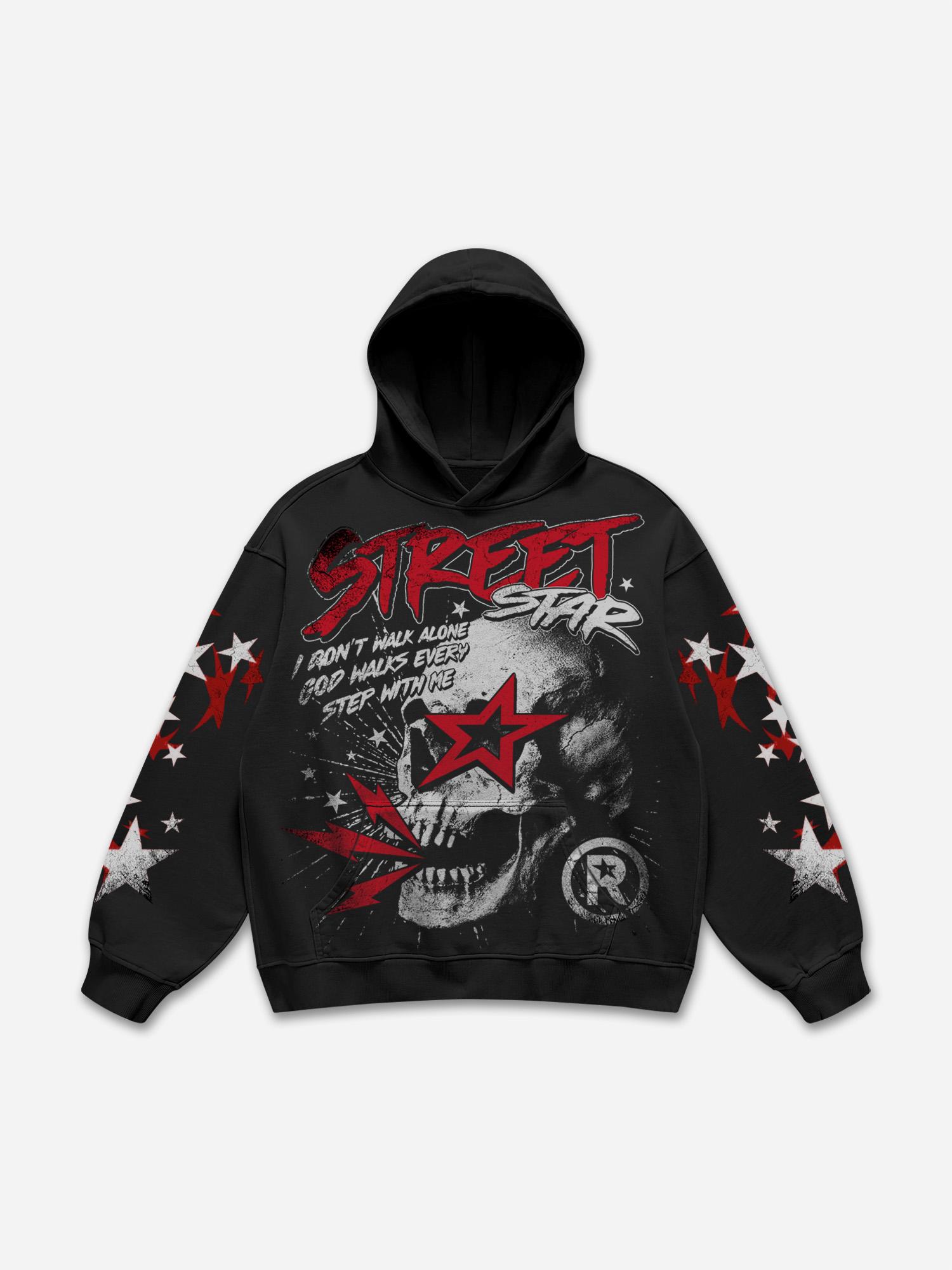 Street Star Skull Stars Vintage Graphic Hoodie