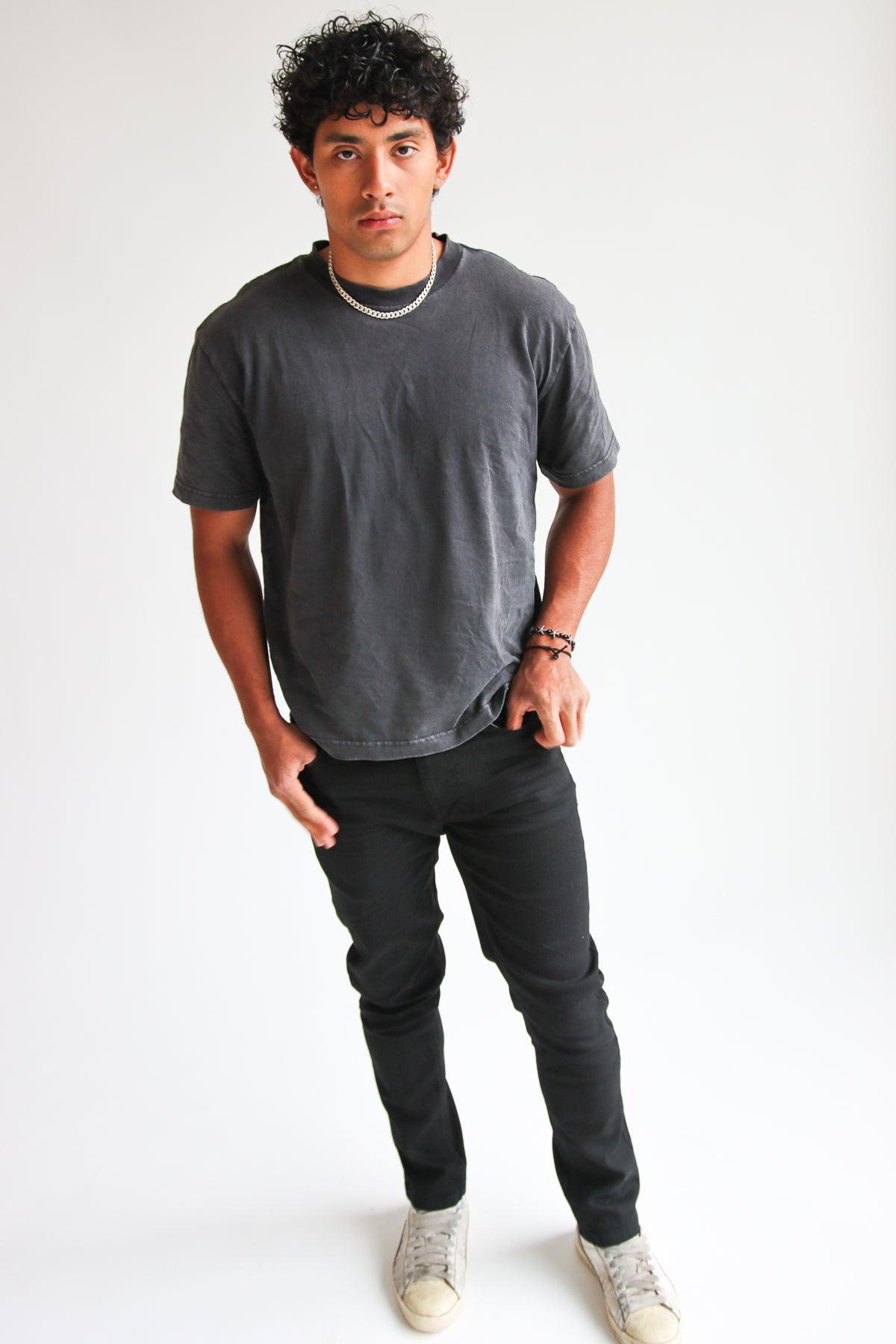 Stretch Raw Denim Skinny Jeans - Black