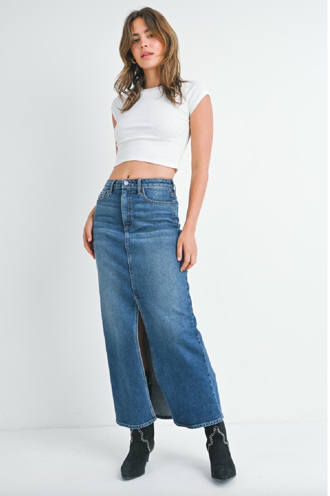 This skirt blends timeless sophistication with a contemporary edge, featuring a sleek, figure-flattering silhouette that drapes effortlessly to the ankle. The washed black finish gives it a sophisticated, lived-in vibe, making it versatile enough to pair with anything from a crisp white blouse to a chunky knit sweater. This skirt is your new style essential, seamlessly transitioning from day to night and season to season.