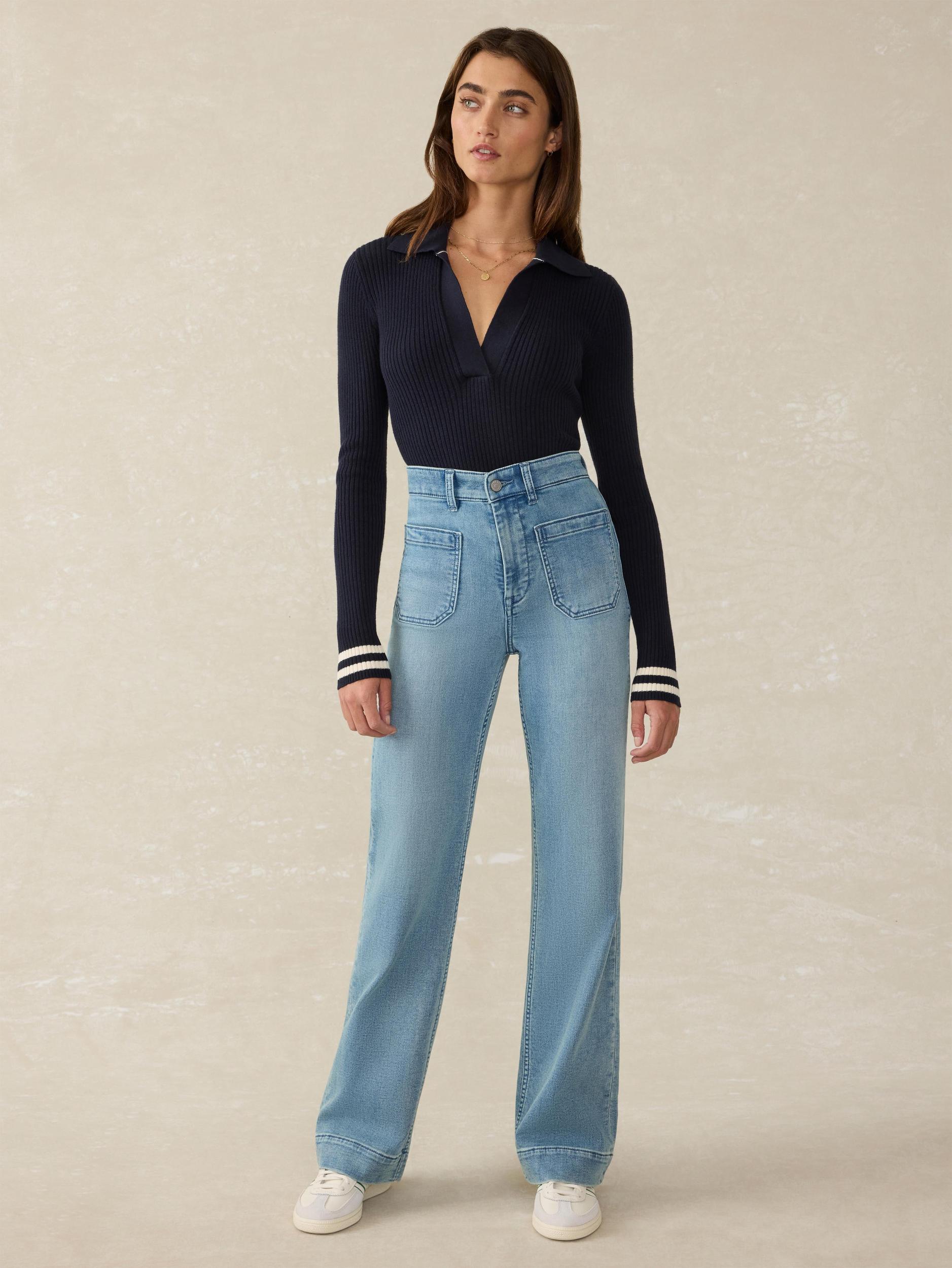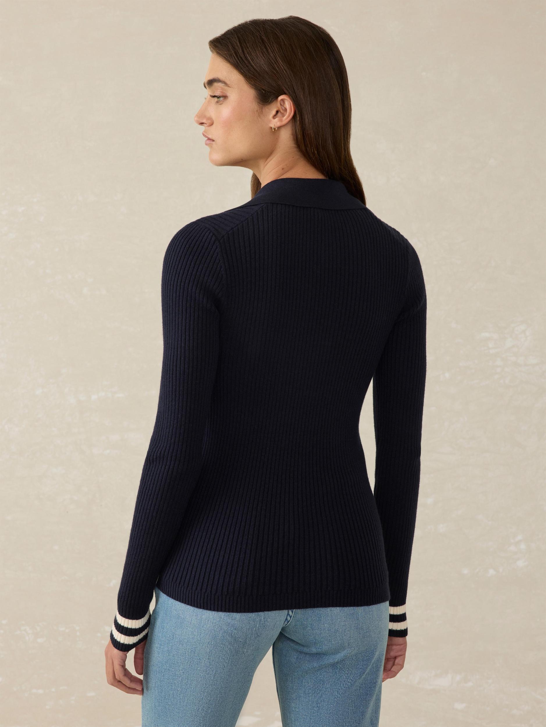 Revamp your casual look with this polo sweater that combines retro athletic style with everyday comfort. Made from a soft organic cotton and cashmere blend, it features a classic point collar and V-neckline for a laid-back yet polished vibe. The relaxed fit is perfect for those off-duty days, easily pairing with your favorite jeans or shorts. Fit: Fitted, Length: 23" Detail: Long sleeves. Rib trims at the neckline, sleeve cuffs, and bottom hem. Material: 95% Organic Cotton, 5% Cashmere (Traceable) Model: Lexi is 5'7 wearing size Small Care: Hand wash cold with like colors. Do not bleach. Lay flat to dry. Cool iron if needed. Dry cleanable. WYS2507-NRP