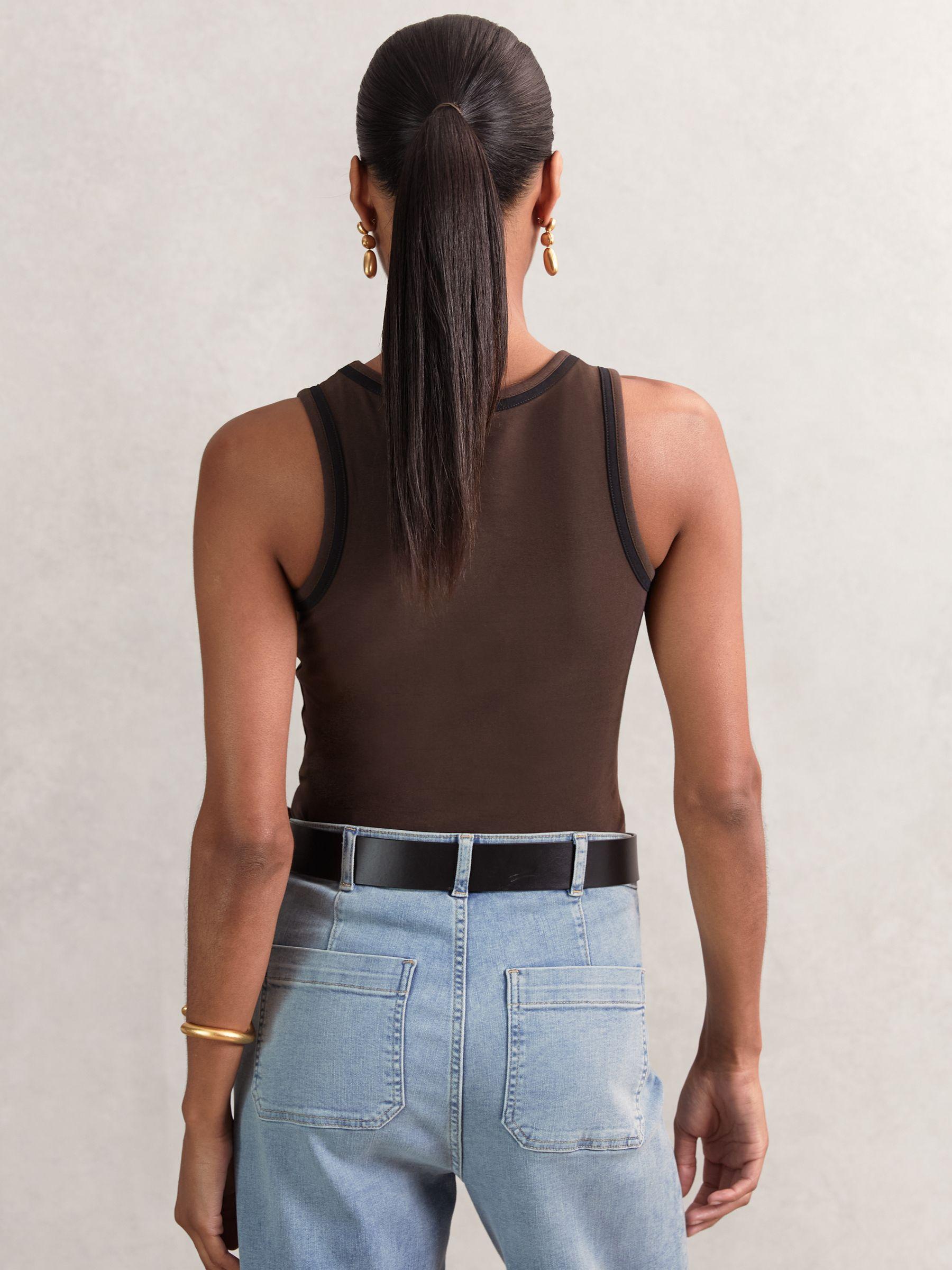 Stretch-Cotton Jersey Tipped Vest in Chocolate Brown/Black