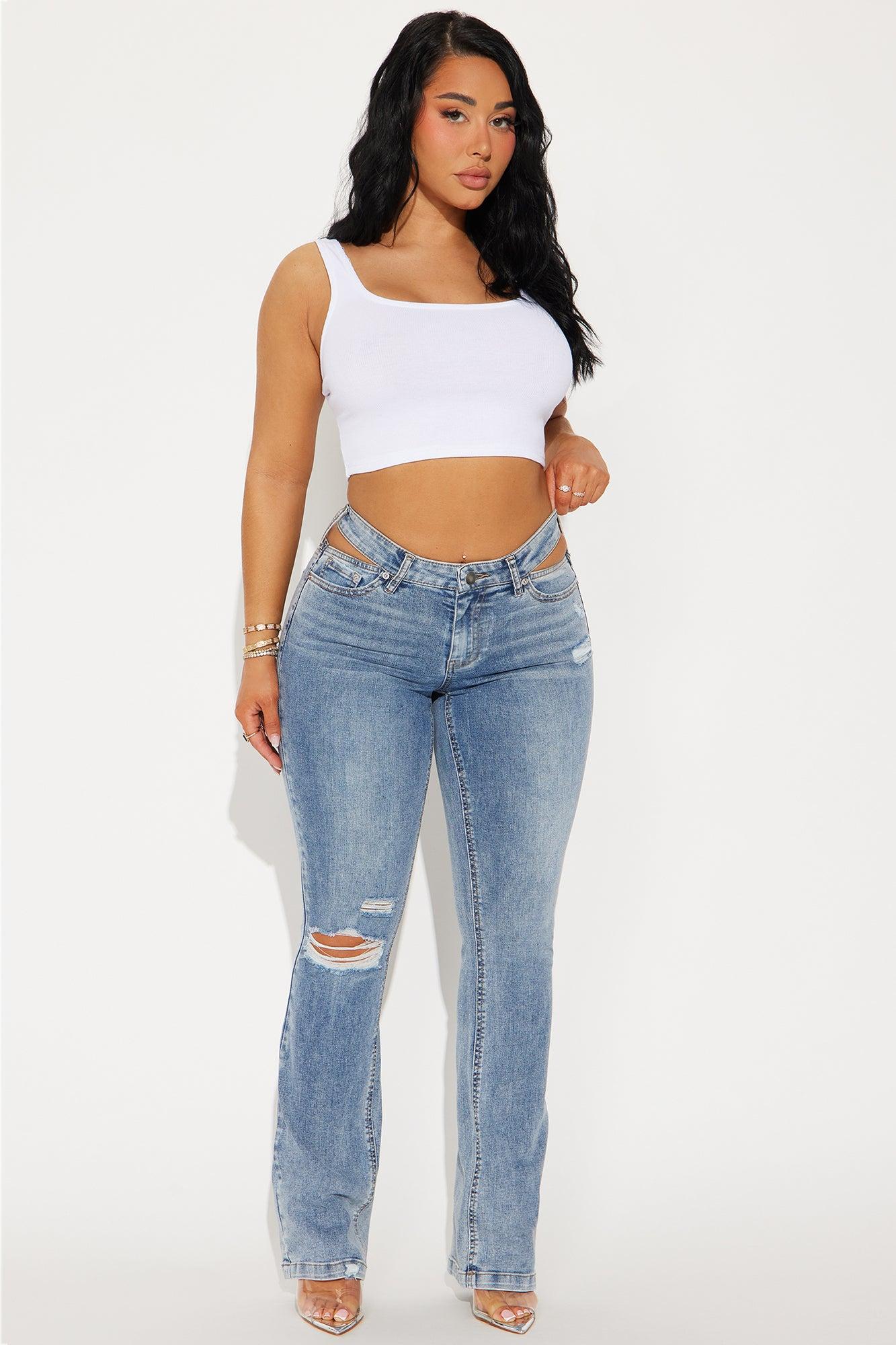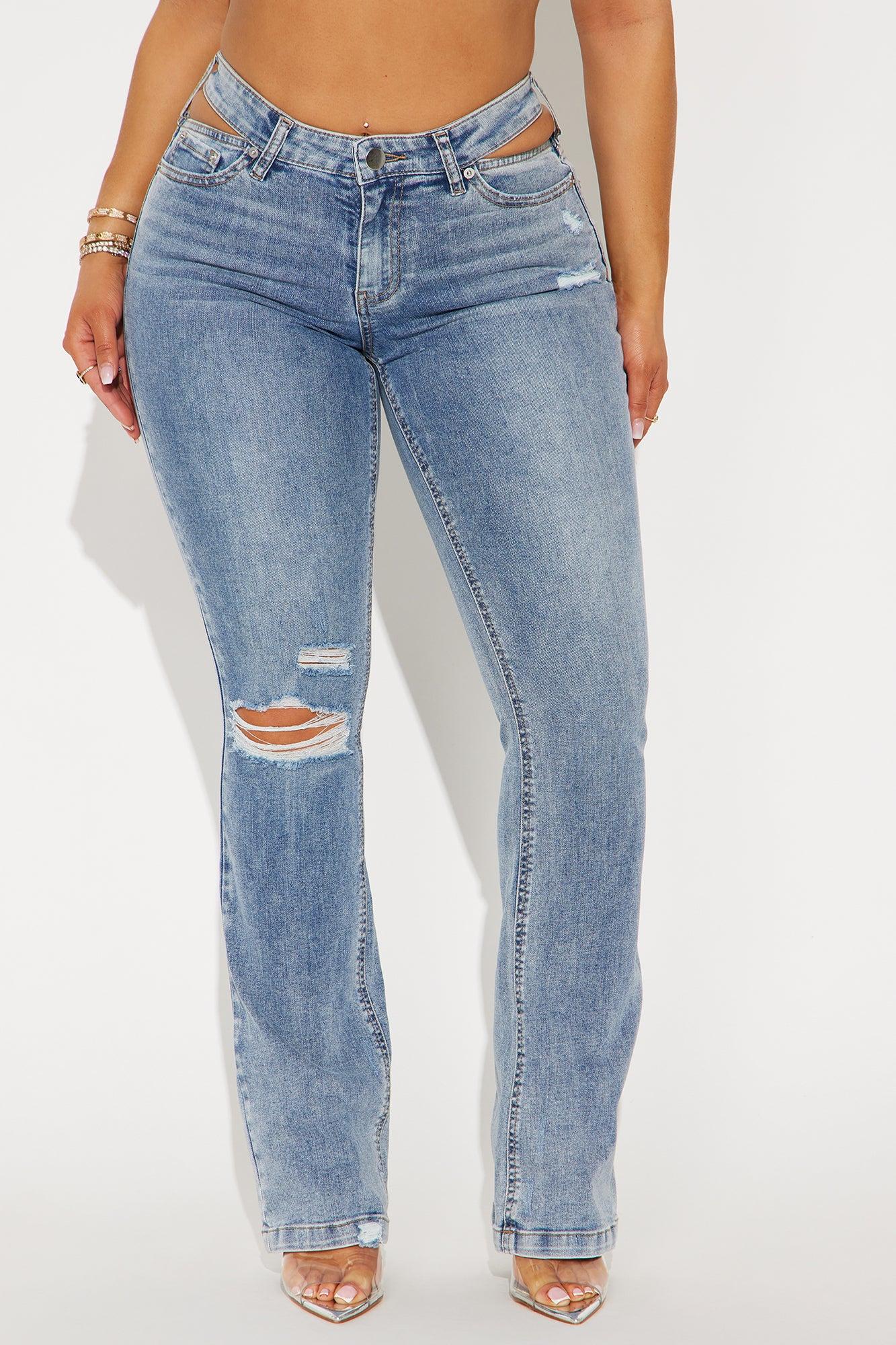 Stretch Cut Out Ripped Bootcut Jeans - Dark Wash