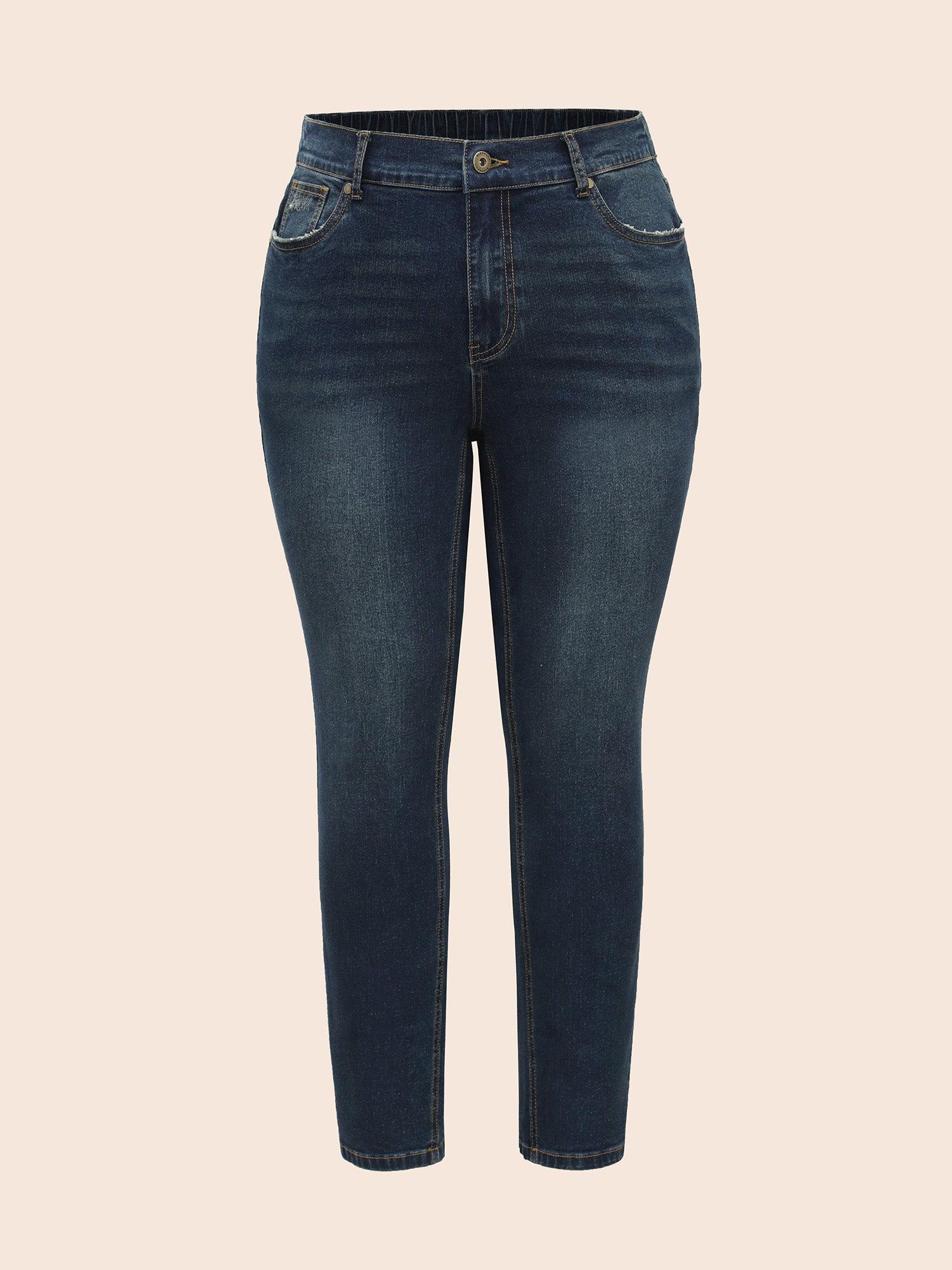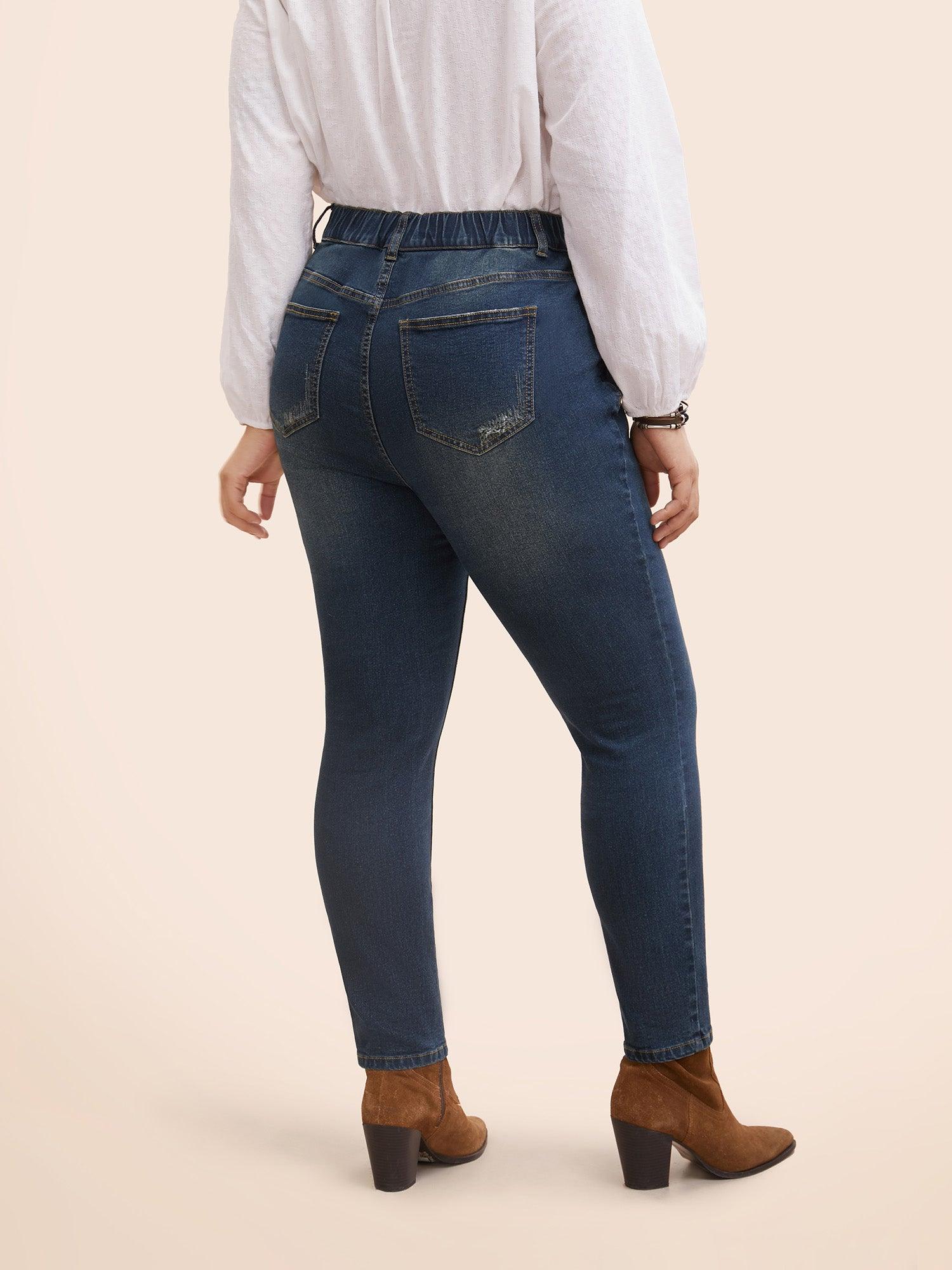 Shop Stretch Denim Pocket Distressing Slim-Fit Jeans now and redefine your style with confidence at BloomChic. Tailored for mid and plus-size women. This trendy Denim Women, sizes 10-30. Color:Bluevintage;Style:Casual;Prints:Non;Details:Button;Pocket:Slanted pocket;Belt:No-belt;Closure Type:Buttoned zipper;Wash:Dark Wash