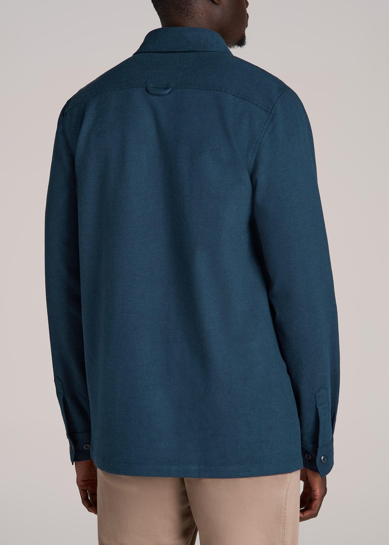 Layer up in this knit tall men’s shirt that’s perfect for chillier days. When the transitional weather hits, it can be hard to know what to wear – a shirt is too little, but a jacket is too much. Enter the overshirt. This style is a hybrid of your favorite jacket and your go-to button shirt, offering plenty of warmth and comfort with all the length you need. It’s been crafted exclusively for guys between 6’3” and 7’1”, with extra-long sleeves that end in buttoned cuffs and a length that’s been measured for your torso. The regular fit makes it a great option for layering, and the stretch knit will keep you snug against the chill without being overly warm. The chest patch pocket with a flap and button and classic seven-button placket completes the look on this must-have overshirt. Wear it over your favorite sweatshirt or long sleeve tee.