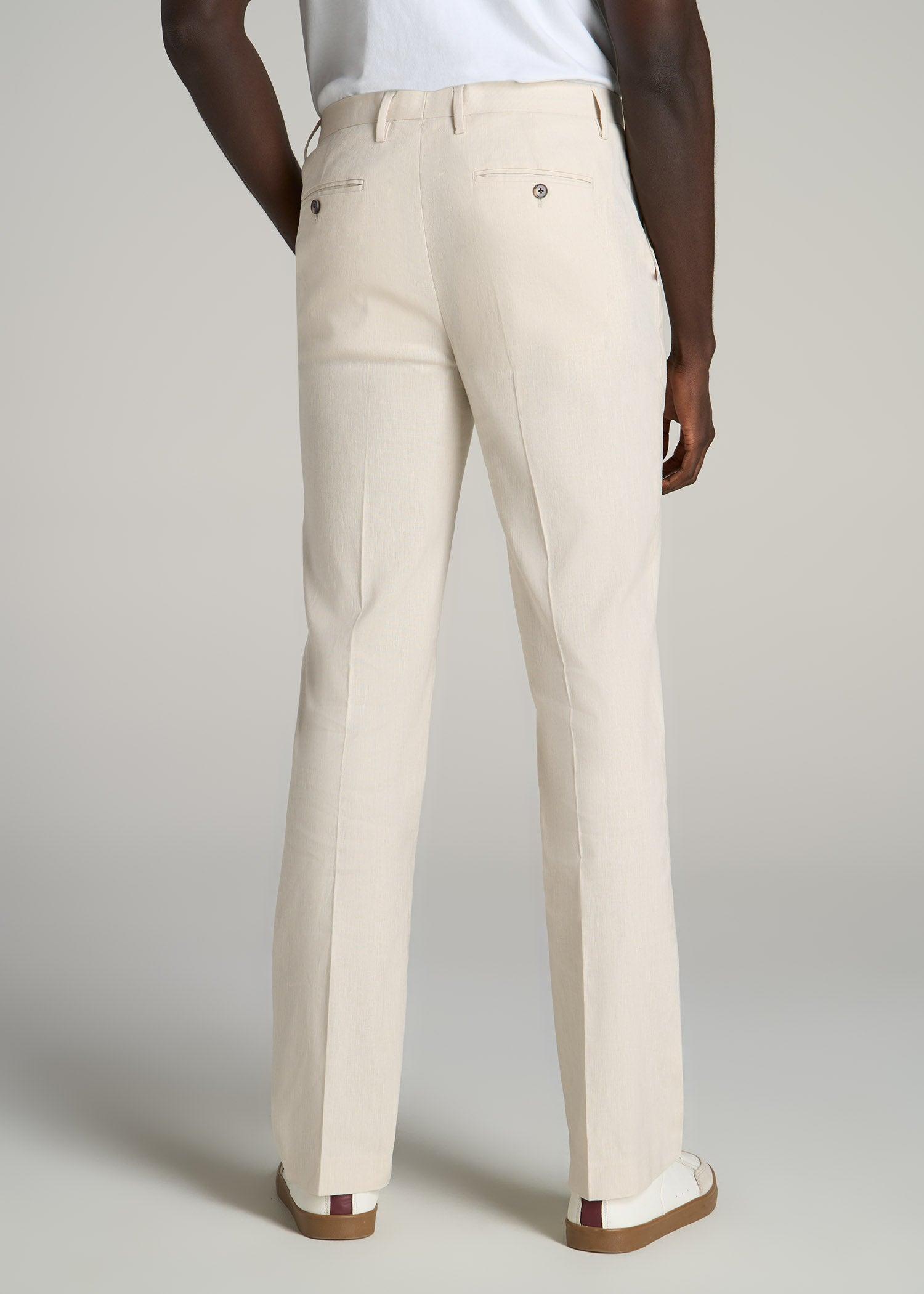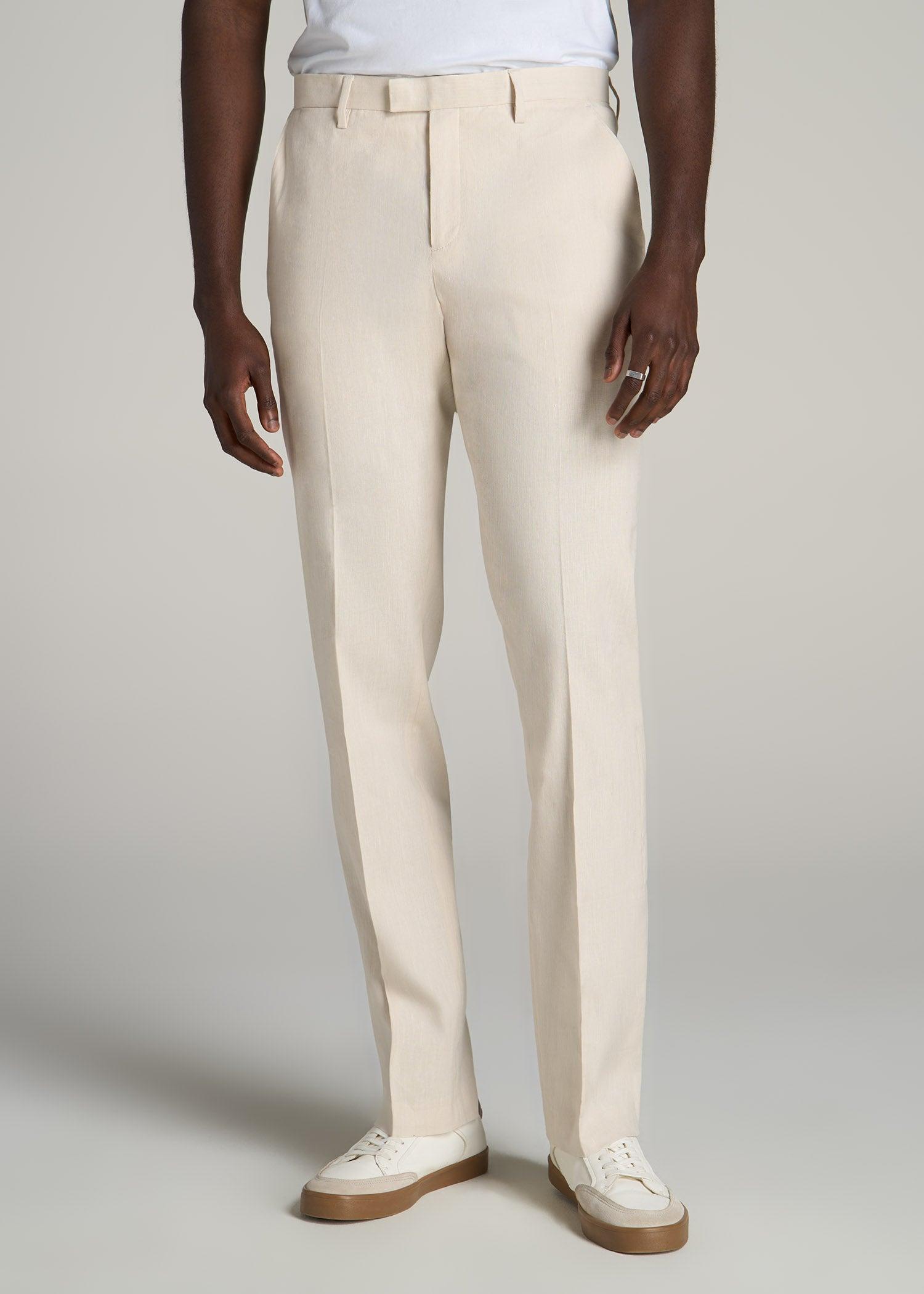Stretch Linen Dress Pants for Tall Men in Light Beige Linen Male