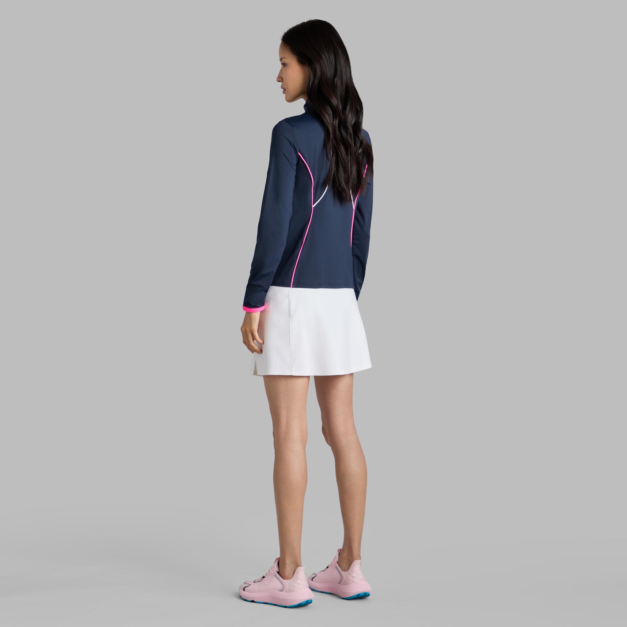 MADE OF STRETCH NYLON INTERLOCK FABRIC, THE QUARTER ZIP PULLOVER WILL EXCEED YOUR EXPECTATIONS OF WHAT SHEER COMFORT FEELS LIKE. PERFECT FOR SUN PROTECTION, THE POPULAR STYLE FEATURES CONTRAST PIPING AND 4-WAY STRETCH FABRIC FOR UNINHIBITED FREEDOM OF MOVEMENT. LONG DAYS ON THE COURSE JUST GOT EASIER.