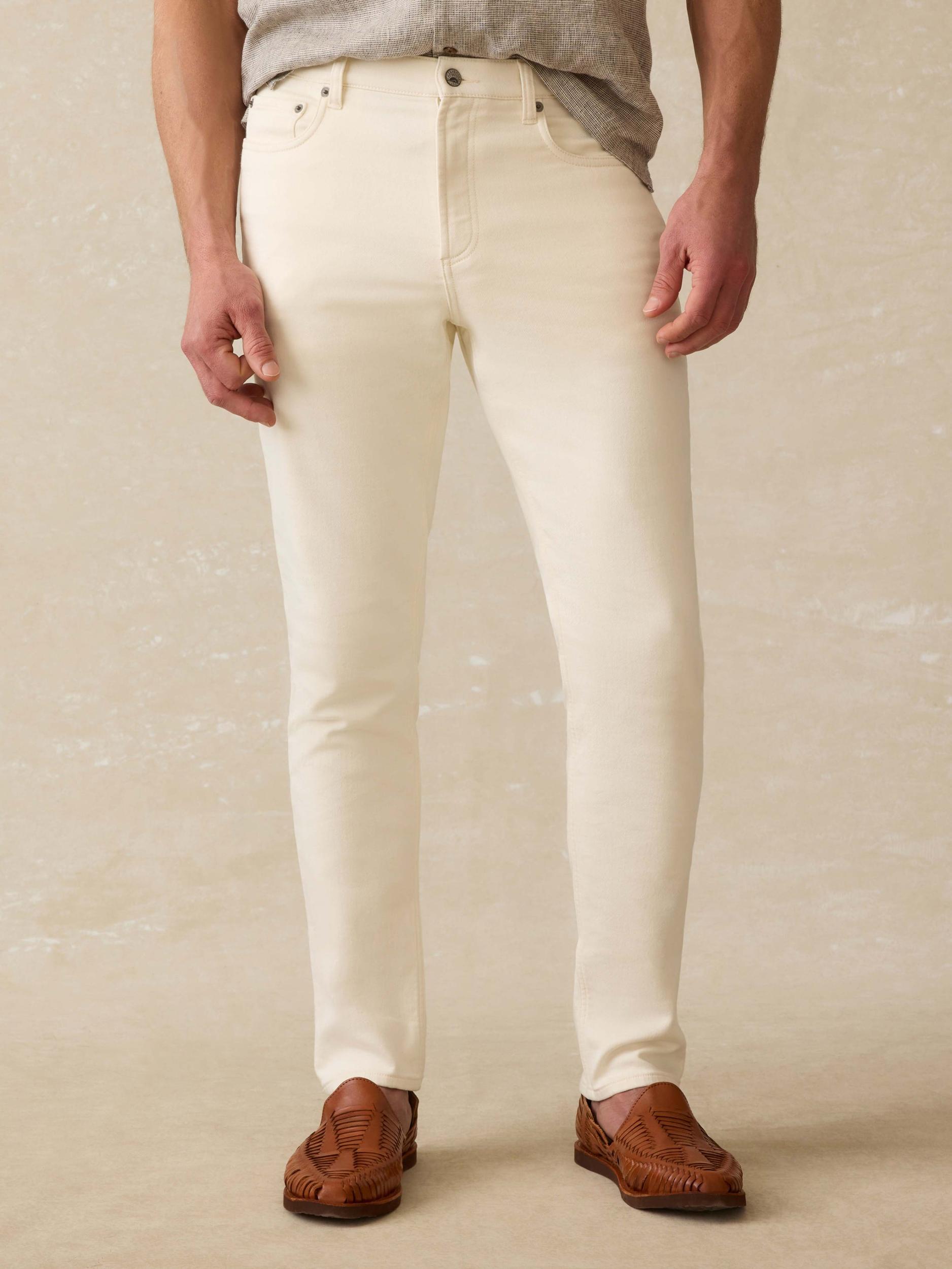 Our Workhorse. Our Go-To. The first pant we're pulling off the rack on any given day of the week. The Stretch Terry 5-Pocket Pant is rugged and structured, best known for its authentic denim look with that signature Faherty HOLY $&*! comfort factor. Fit: Mid-rise waist, fitted through the hip and thigh, with slim l
