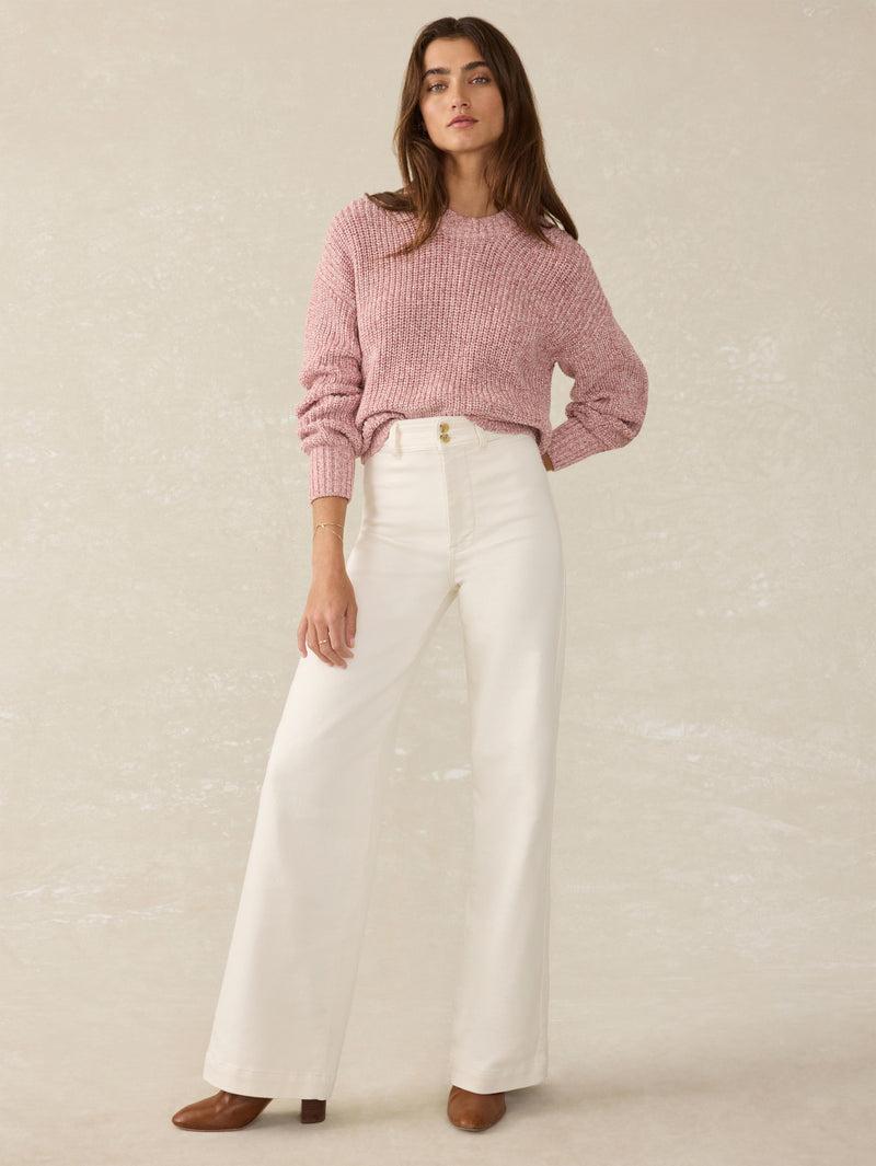 Our new Harbor silhouette features a high rise and wide leg that reads polished and playful – just in time for spring. Crafted from our signature Stretch Terry (looks like denim, feels like sweats), we designed it with hidden front seam pockets to add to the hugged-in feel that's endlessly comfortable and flattering. Decorative stitching and double buttons on the waistband complete the coastal-inspired look.