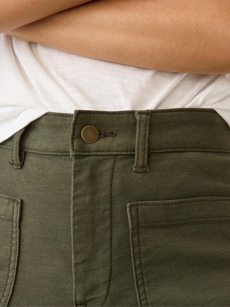 Detail: Garment dyed stretch terry slim wide leg pants with patched front and back pockets. Regular stretch. Ankle lengthYarn dyed stretch terry slim wide leg pants with patched front and back pockets. Regular stretch. Ankle length