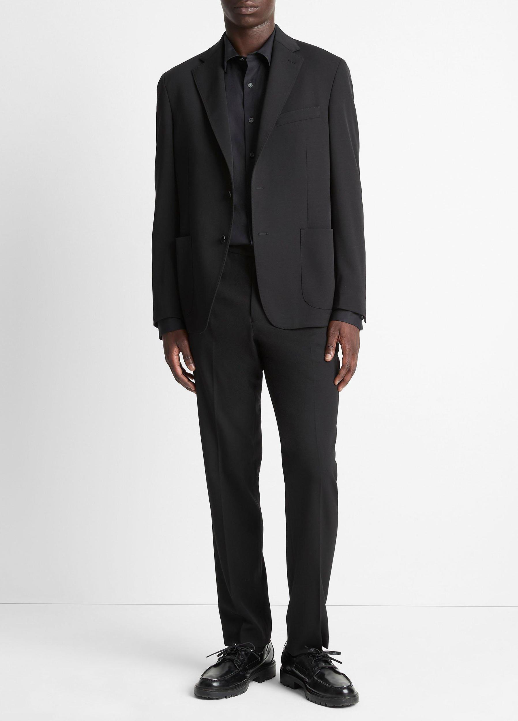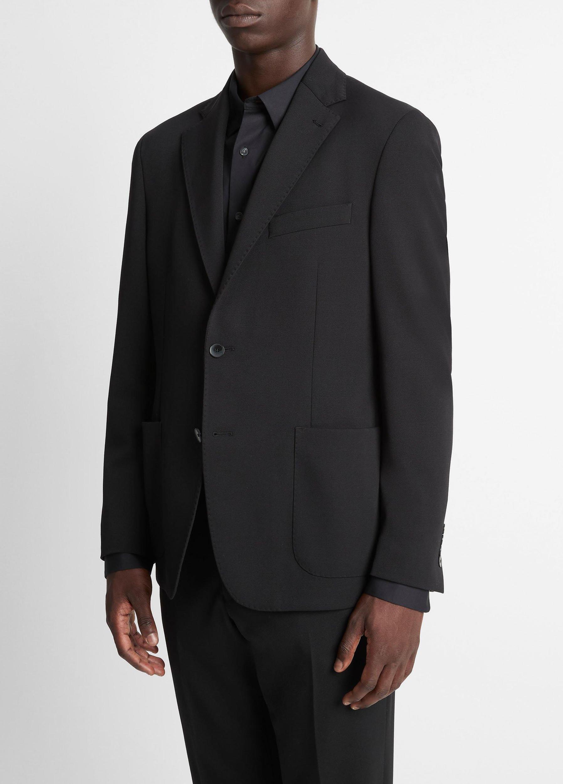 A sport coat is an undeniable wardrobe essential. This one is tailored with a relaxed fit and crafted from soft and stretchy wool in an endlessly versatile black shade. It's finished with timeless suiting details like notch lapels, patch pockets and side vents for ease of movement.