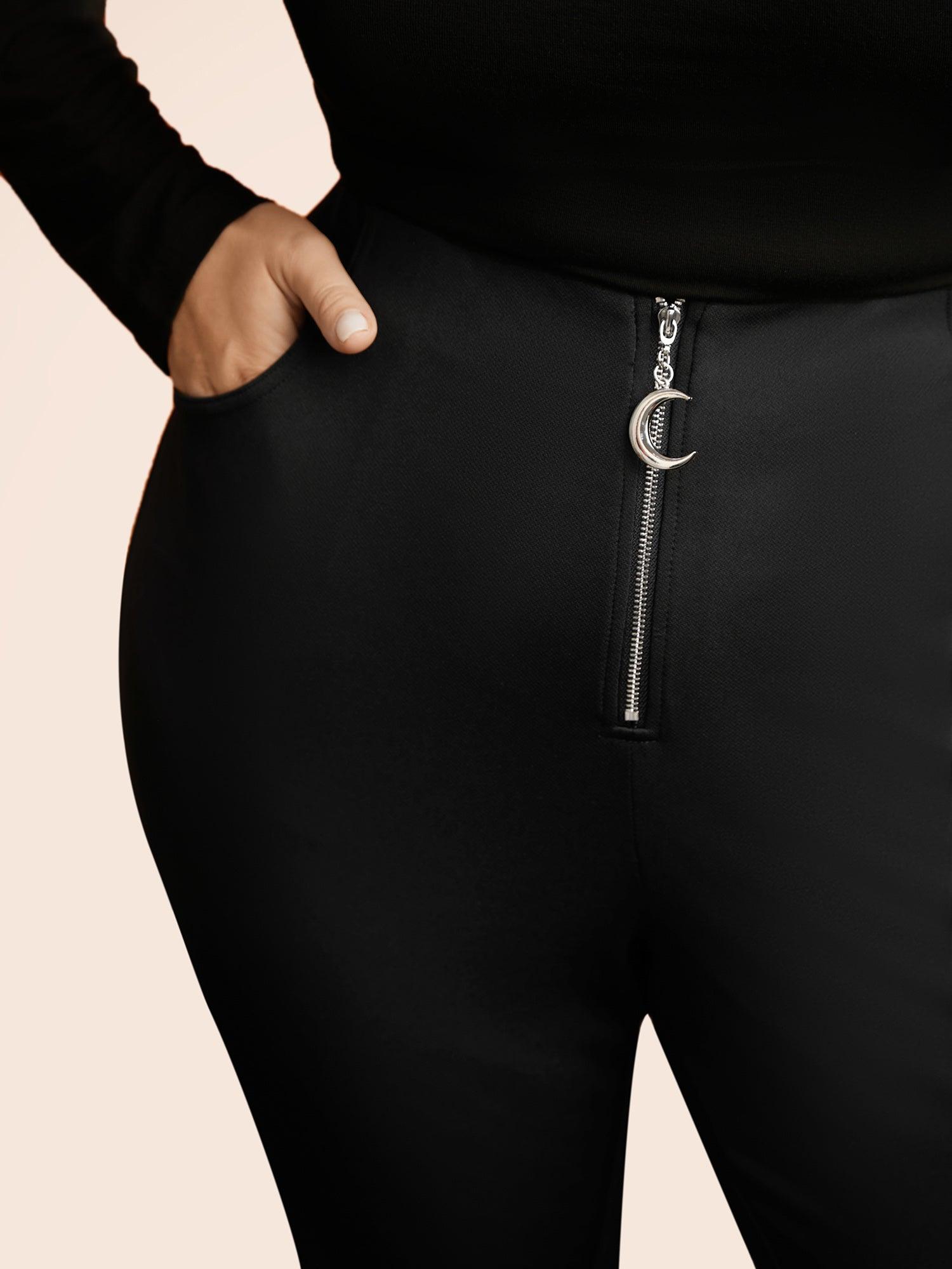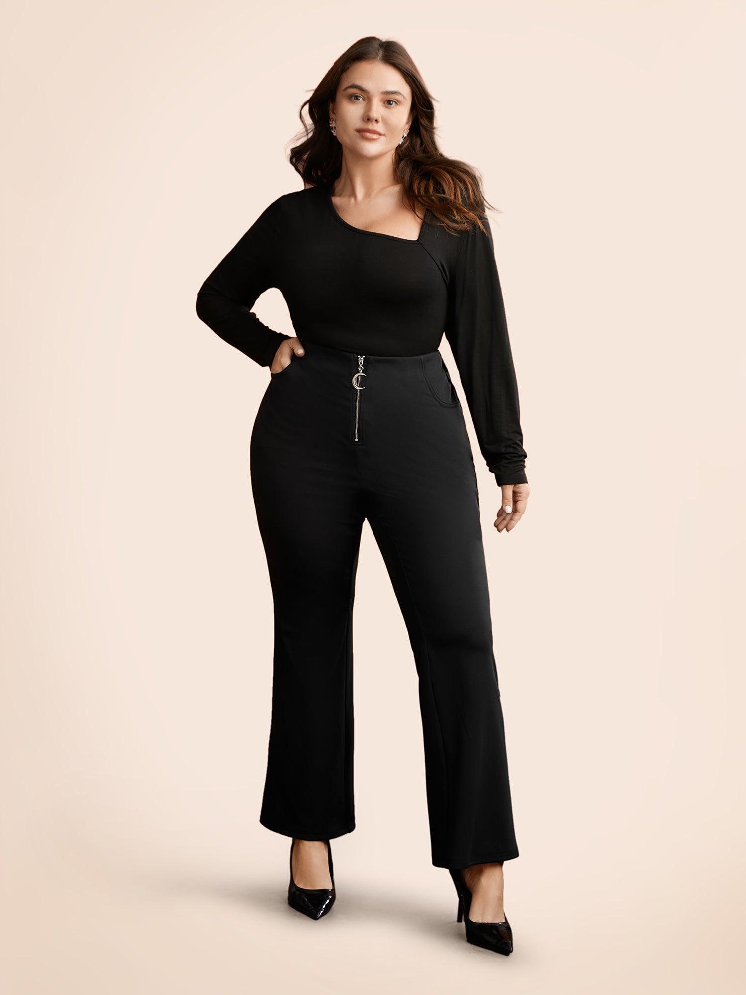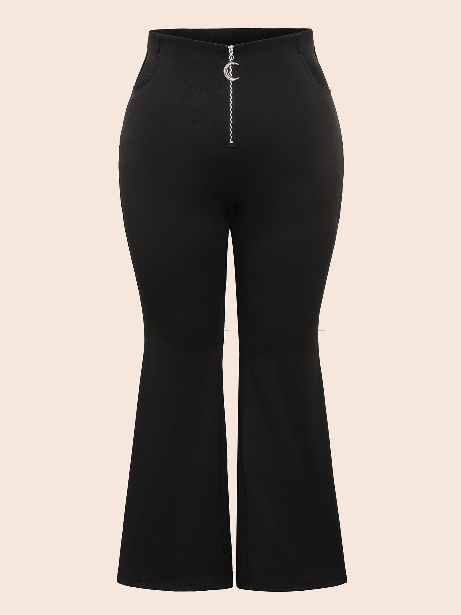 Shop Stretchy Moon Shaped Zipper Flare Pants now and redefine your style with confidence at BloomChic. Tailored for mid and plus-size women. This trendy Bottoms Women, sizes 10-30. Season:Winter;Color:Black;Style:Elegant;Waist Design:Mid Rise;Prints:Non;Details:Non;Pocket:Slanted pocket;Belt:No-belt;Closure Type:Non