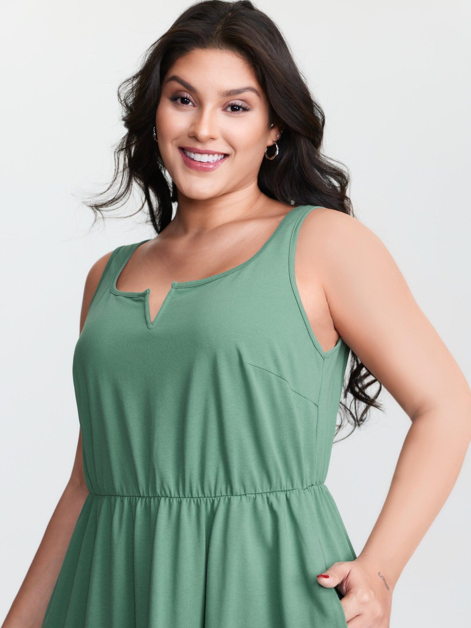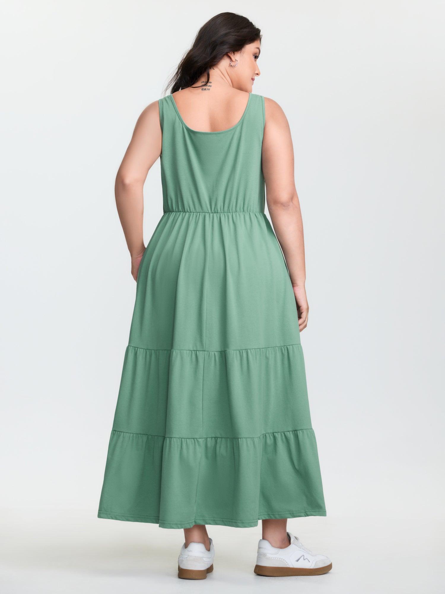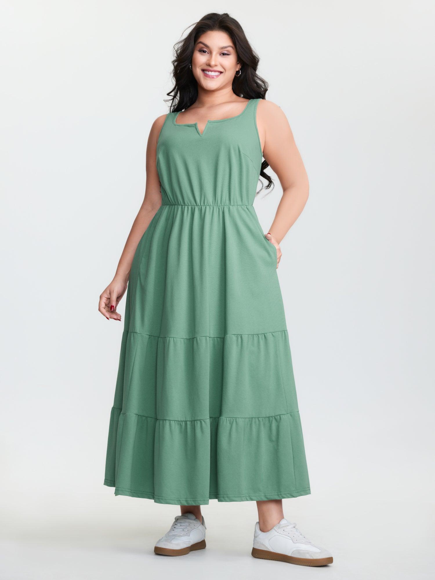 Shop Stretchy Tiered Flowy Maxi Dress now and redefine your style with confidence at BloomChic. Tailored for mid and plus-size women. This trendy Dress, sizes 10-30. You can never go wrong with BloomChic Dresses. Color:Mint;Style:Leisure;Neckline:Notched collar;Sleeve Type:Sleeveless;Prints:Non;Details:Gathered, Tiered;Pocket:Side seam pocket;Belt:No-belt;Closure Type:Non