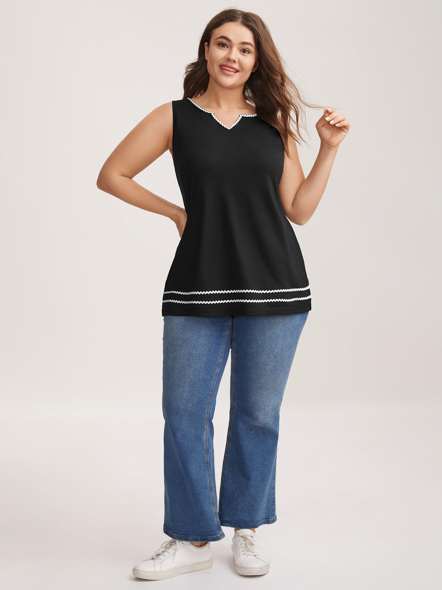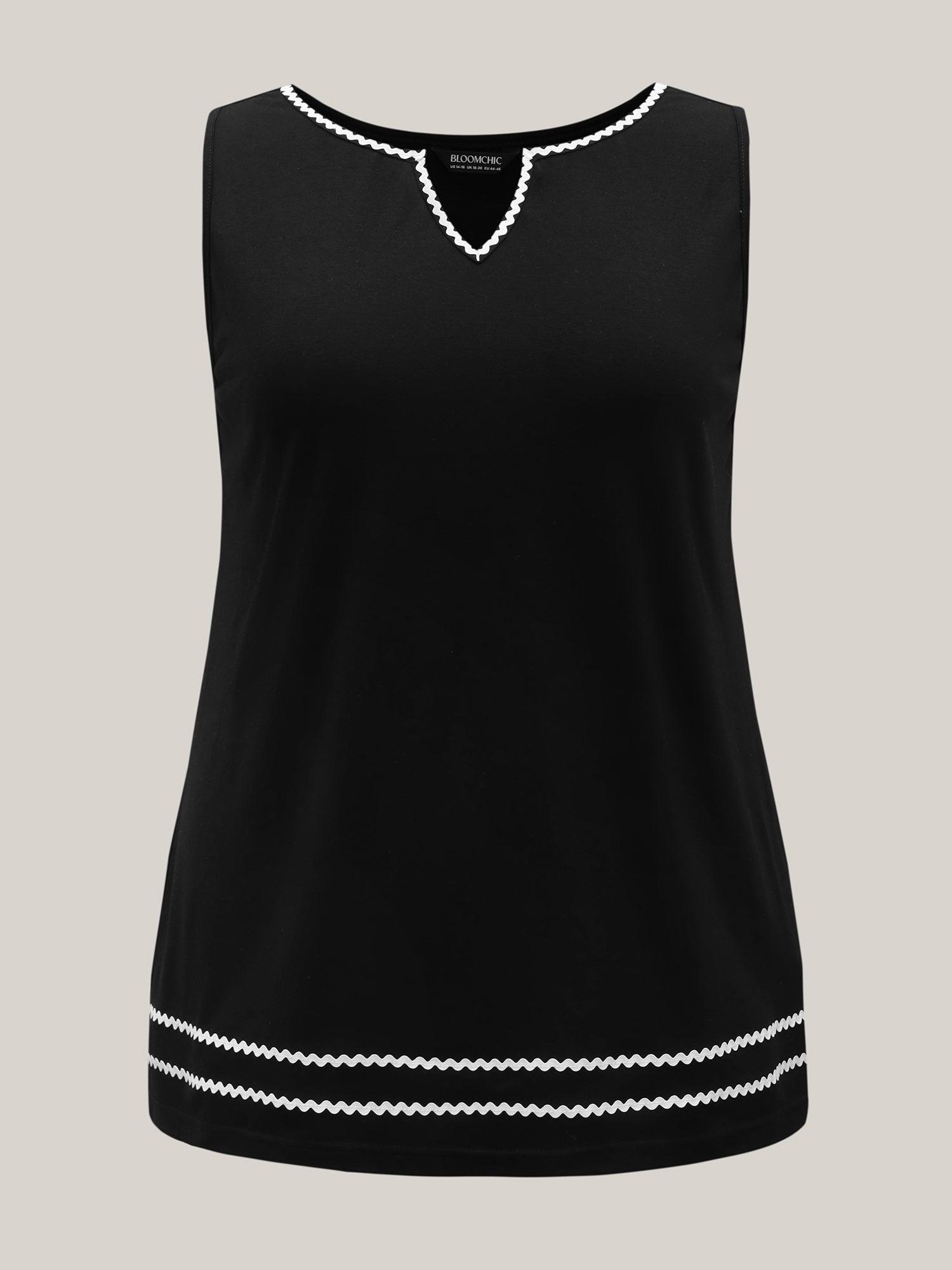 Shop Stretchy Webbed Split Neck Tank Top now and redefine your style with confidence at BloomChic. Tailored for mid and plus-size women. This trendy Tops Women, sizes 10-30. Color:Black;Prints:Non;Neckline:Notched collar;Sleeve Type:Sleeveless;Details:Woven ribbon&lace trim, Contrast;Pocket:No-pocket