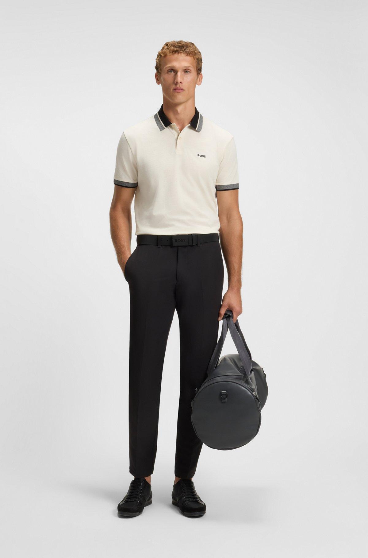 Stripe-collar polo shirt in cotton piqué