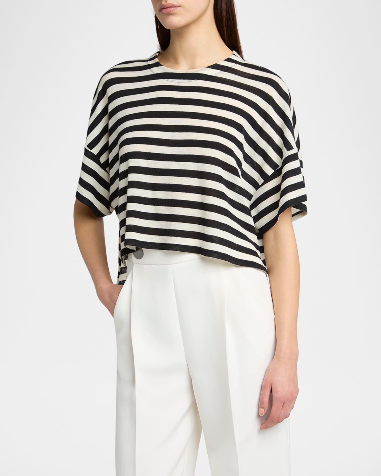 Stripe High Low Wool T-Shirt
