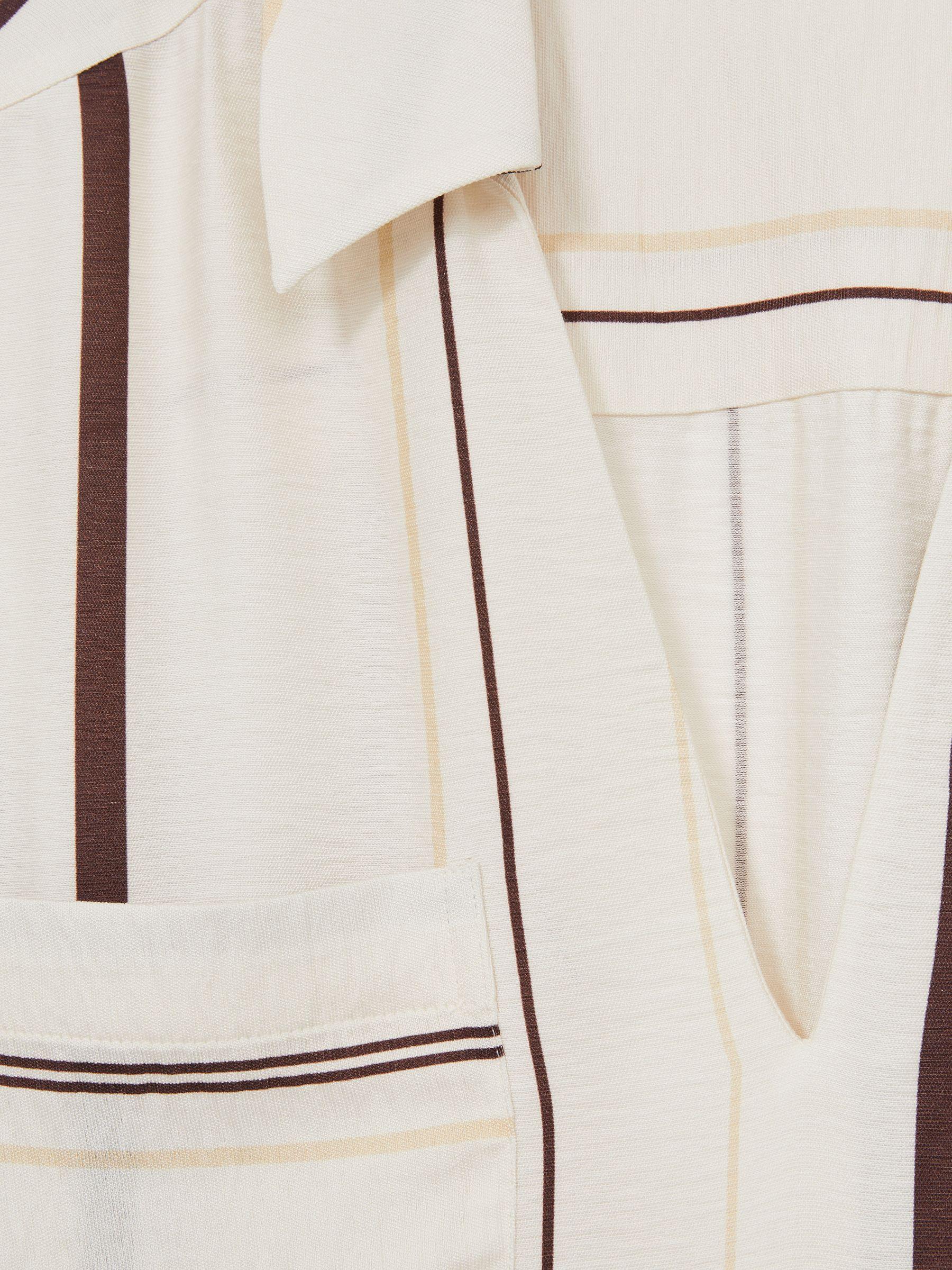 The Carlotta is a breezy, striped kaftan-style overshirt, ideal for warm beach days and beyond. Designed with a ‘70s-inspired spread collar and wide half sleeves, it’s finished with a tonal striped pattern for effortless style. Striped print. Relaxed fit. Spread collar with V-Neck. Drop shoulders. Wide short sleeves.