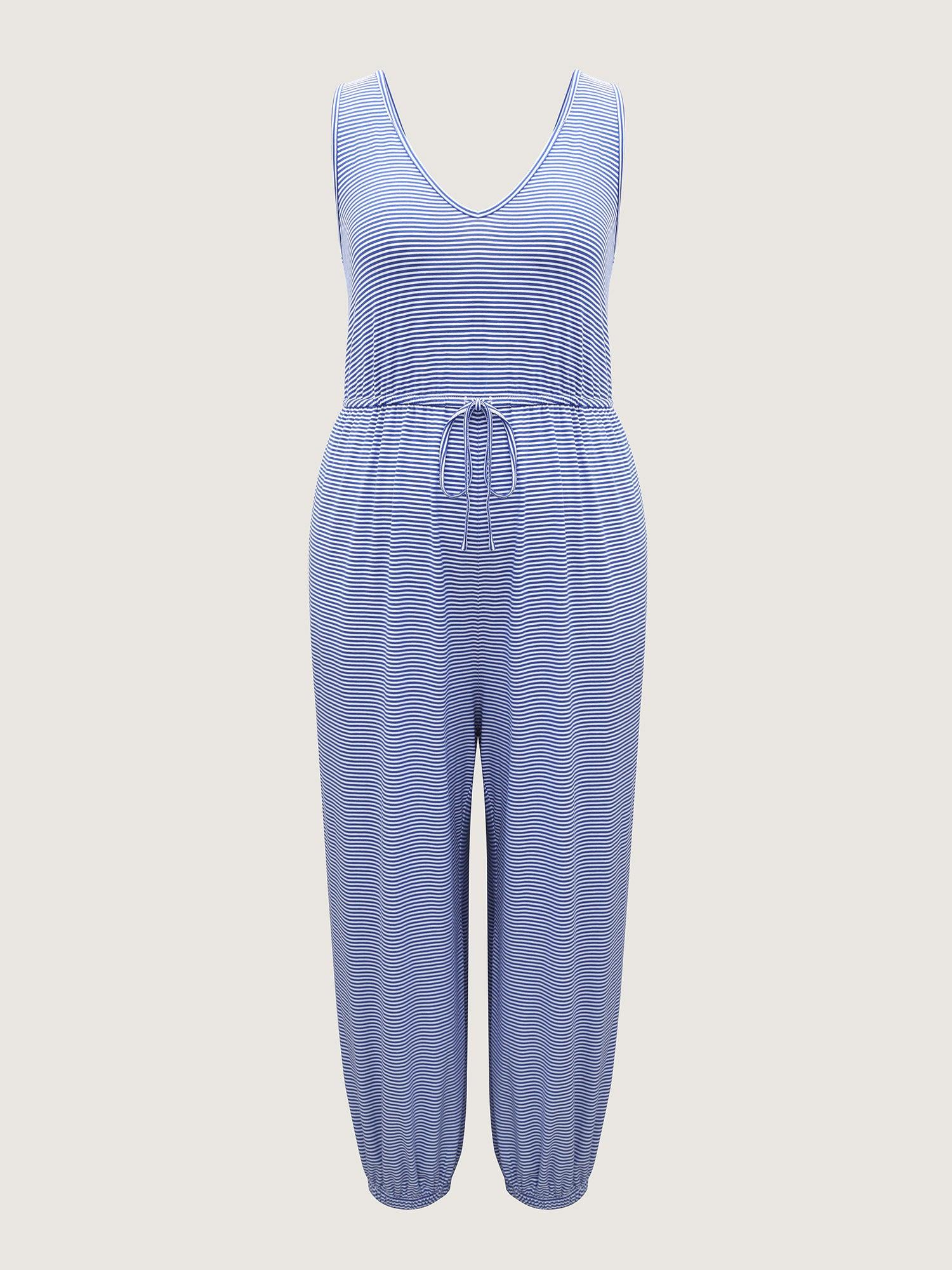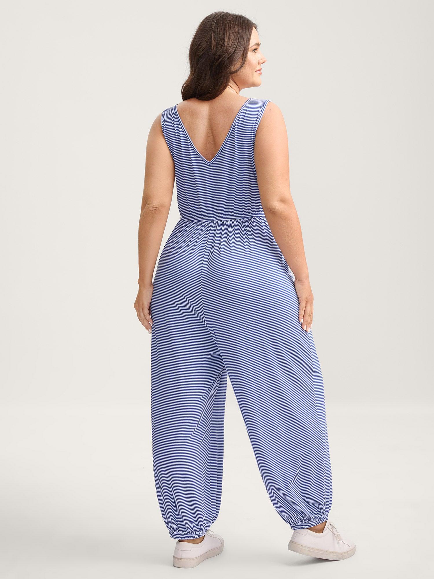 Shop Stripe Print Stretchy Hem Cami Jumpsuit now and redefine your style with confidence at BloomChic. Tailored for mid and plus-size women. This trendy Loungewear Women, sizes 10-30. Color:Skyblue;Neckline:V-neck;Sleeve Type:Sleeveless;Prints:Stripes;Pocket:Slanted pocket;Belt:No-belt;Closure Type:Non