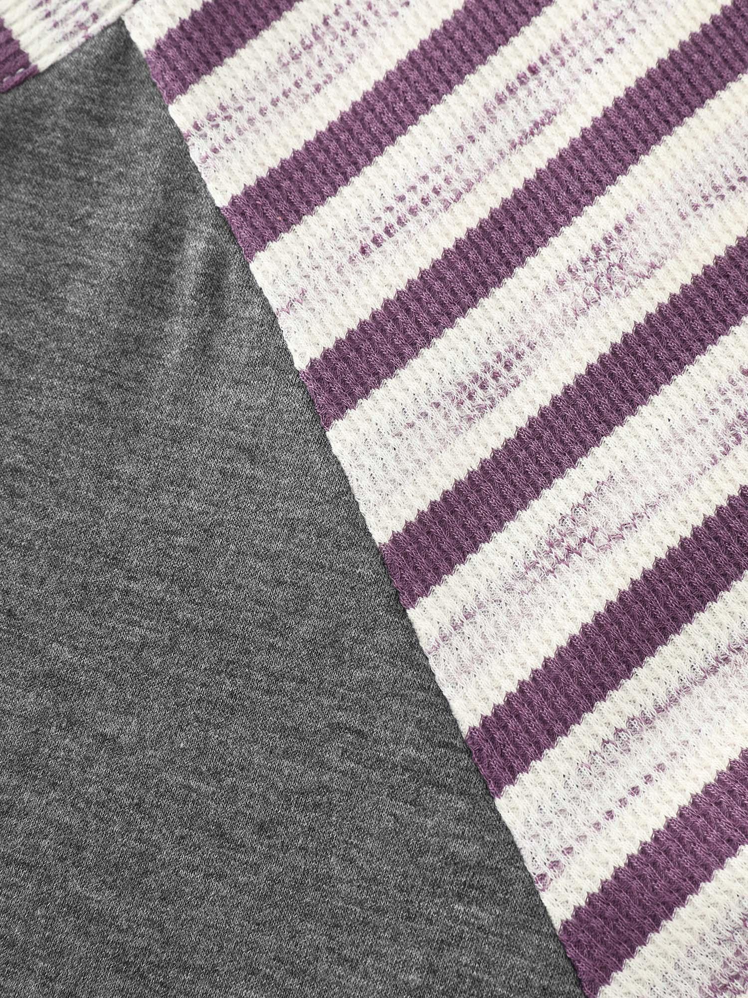 Shop Stripe Raglan Sleeve Round Neck T-Shirt now and redefine your style with confidence at BloomChic. Tailored for mid and plus-size women. This trendy Tops Women, sizes 10-30. Color:DimGray;Style:Leisure;Prints:Non;Neckline:Flat collar with V-notch;Sleeve Type:Regular Sleeve;Details:Contrast;Pocket:No-pocket