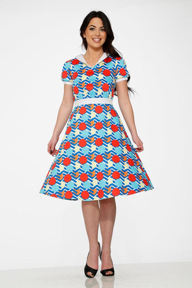 Make a statement in the Stripe Red Dot Swing Dress by Orchid Bloom—a fun twist on vintage flair. Featuring a unique mix of stripes and bold red polka dots, this swing silhouette brings energy and personality to any occasion.Crafted from a breathable cotton-spandex blend, it offers comfortable stretch and a flattering fit. Finished with a center back zipper and handy side pockets, it’s as practical as it is eye-catching.Fabric Composition97% Cotton, 3% SpandexFabric provides stretchLength: 41"ImportedDesign DetailsCenter back zipperSide pockets