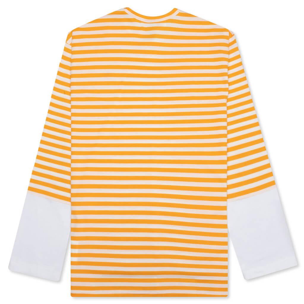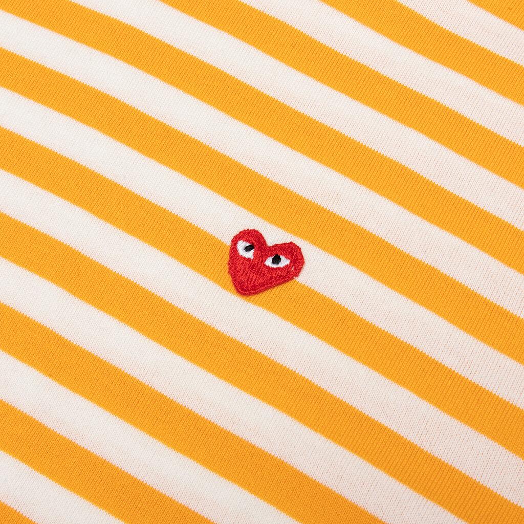 The latest addition to the Comme des Garçons PLAY repertoire is the Stripe White T-Shirt. The silhouette is composed entirely of cotton and features a crew neckline. An all-over striped design makes a distinct statement. An embroidered bug-eyed red heart is embroidered at the chest for a completed look. 100% cotton Ribbed neckline Embroidered heart Striped design Style No: AZ-T320-051-2 AZ T320 051 2