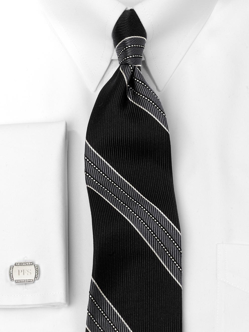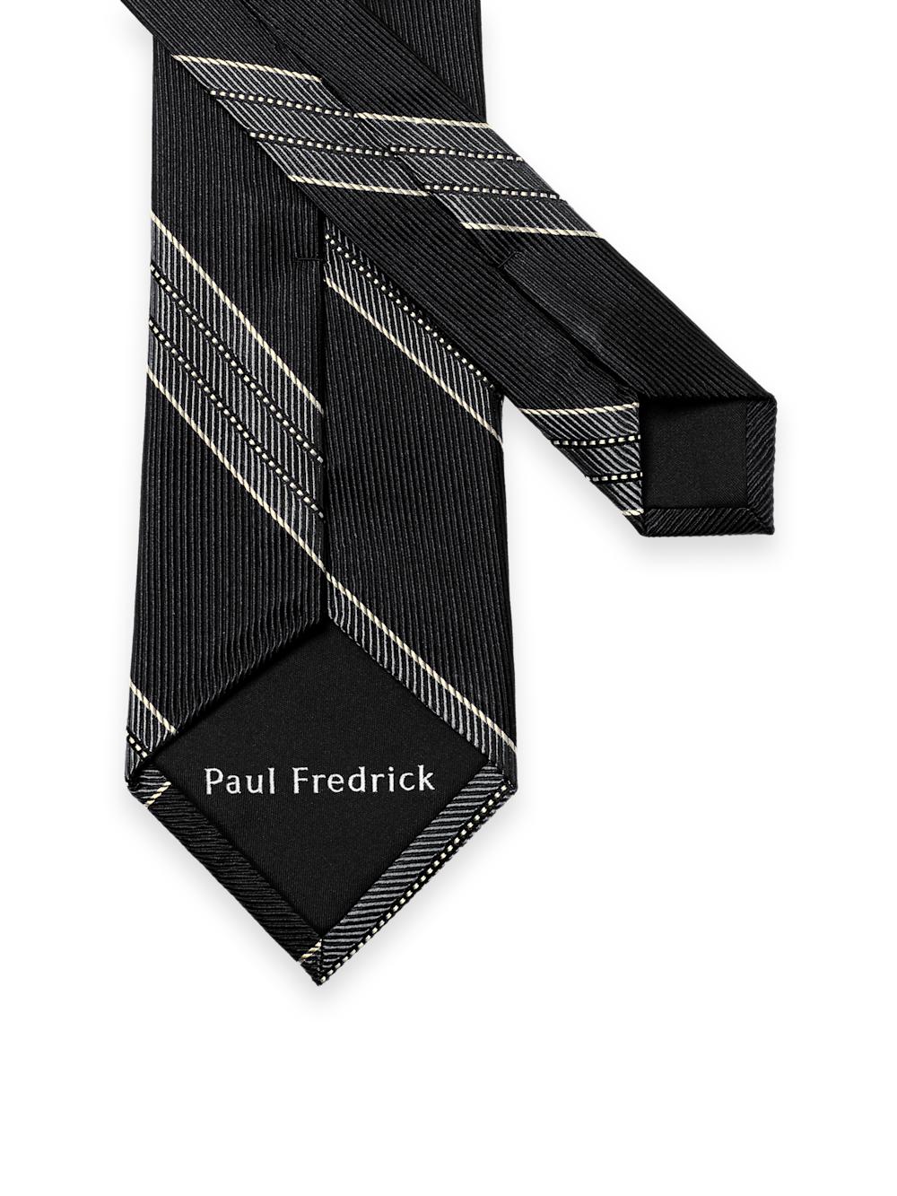 Stripe Woven Silk Tie - Black/grey