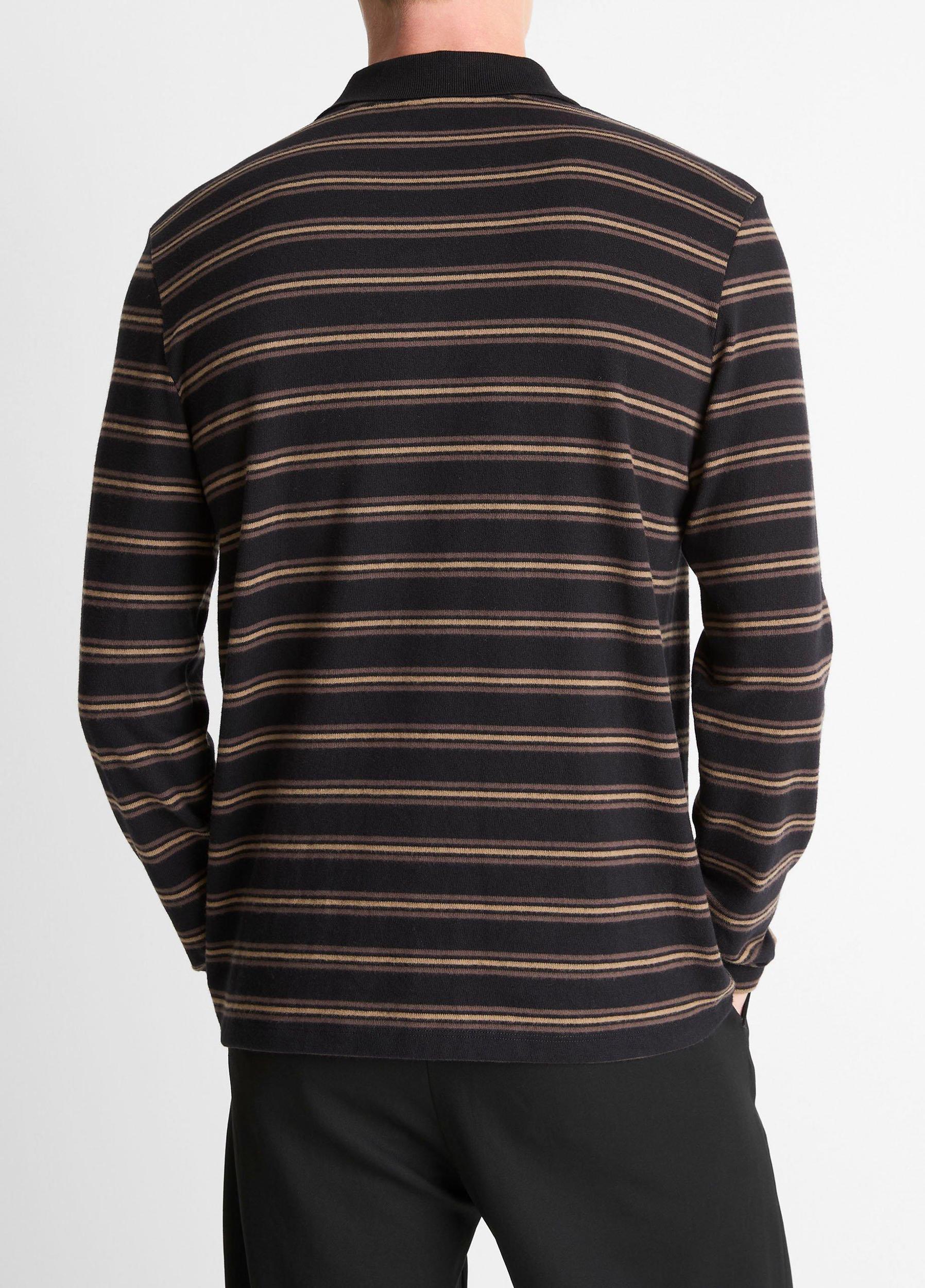 Striped Cotton-Blend Long-Sleeve Polo Shirt