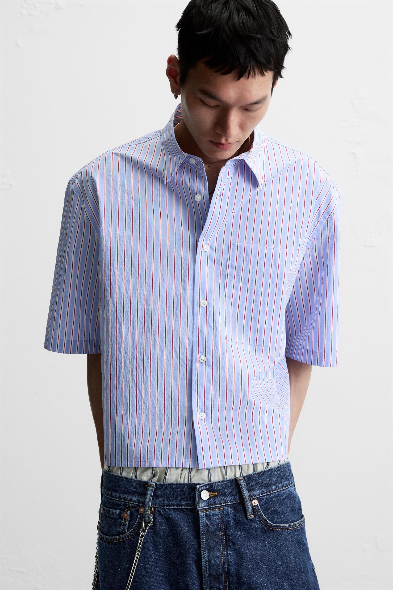 STRIPED CROPPED FIT SHIRT