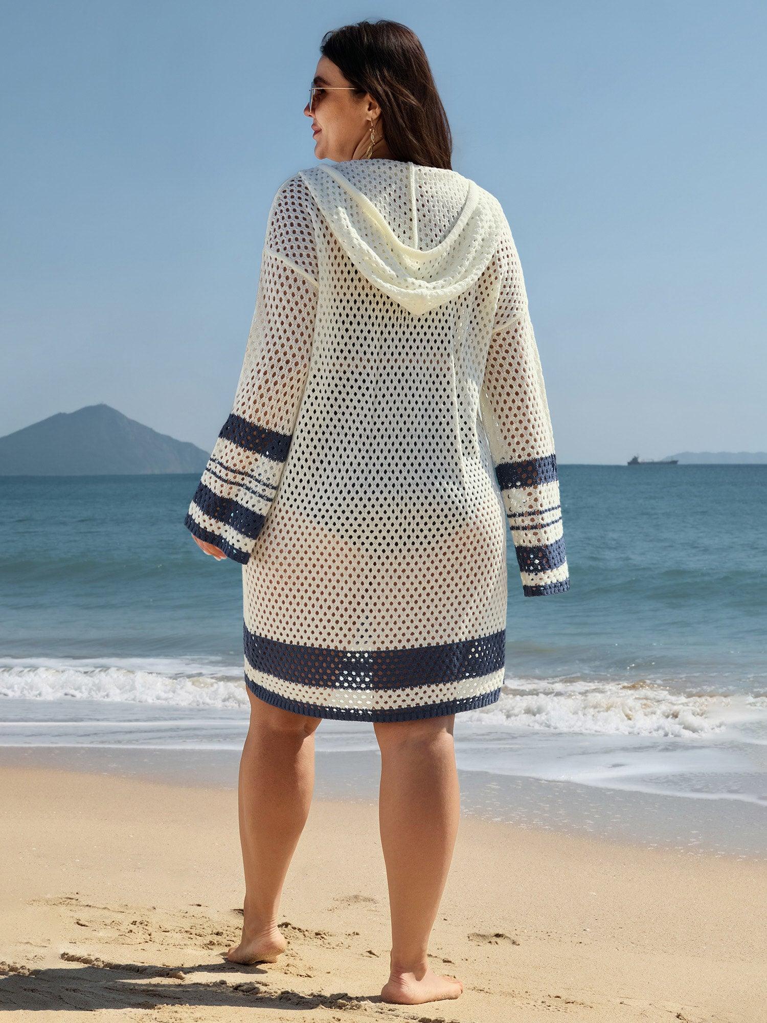 Shop Striped Cut-Out Hooded Swim Cover-Up now and redefine your style with confidence at BloomChic. Tailored for mid and plus-size women. This trendy Swimwear Women, sizes 10-30. Color:Original White;Style:Resort;Neckline:Hooded;Sleeve Type:Drop shoulder sleeve;Prints:Geometric & color block;Details:Contrast, Cut-Out, Drawstring;Pocket:No-pocket;Belt:No-belt;Chest pad:No-chest pad;Lining:No-lining;Closure Type:Non;Swimsuit types:Pullover Cover-Ups