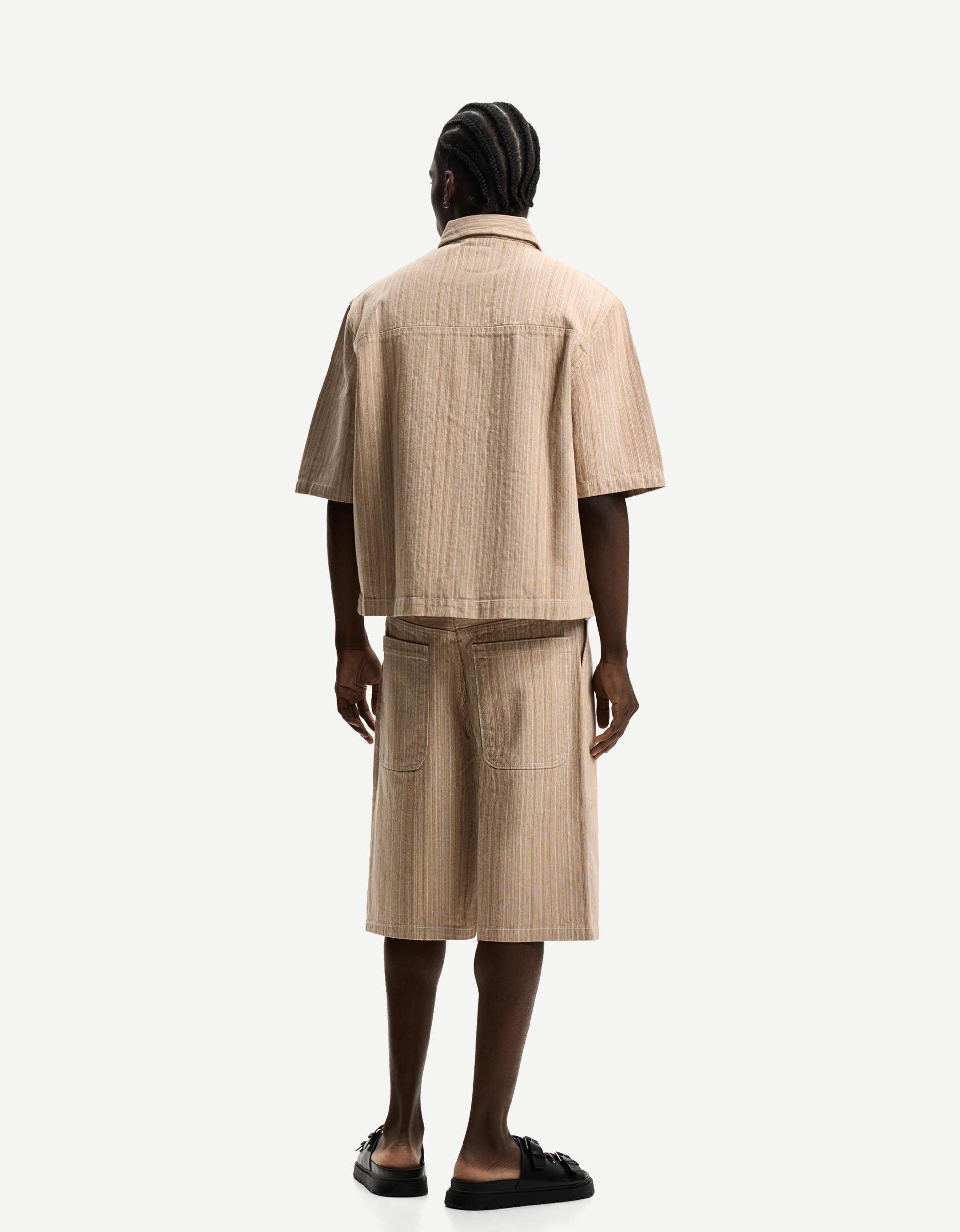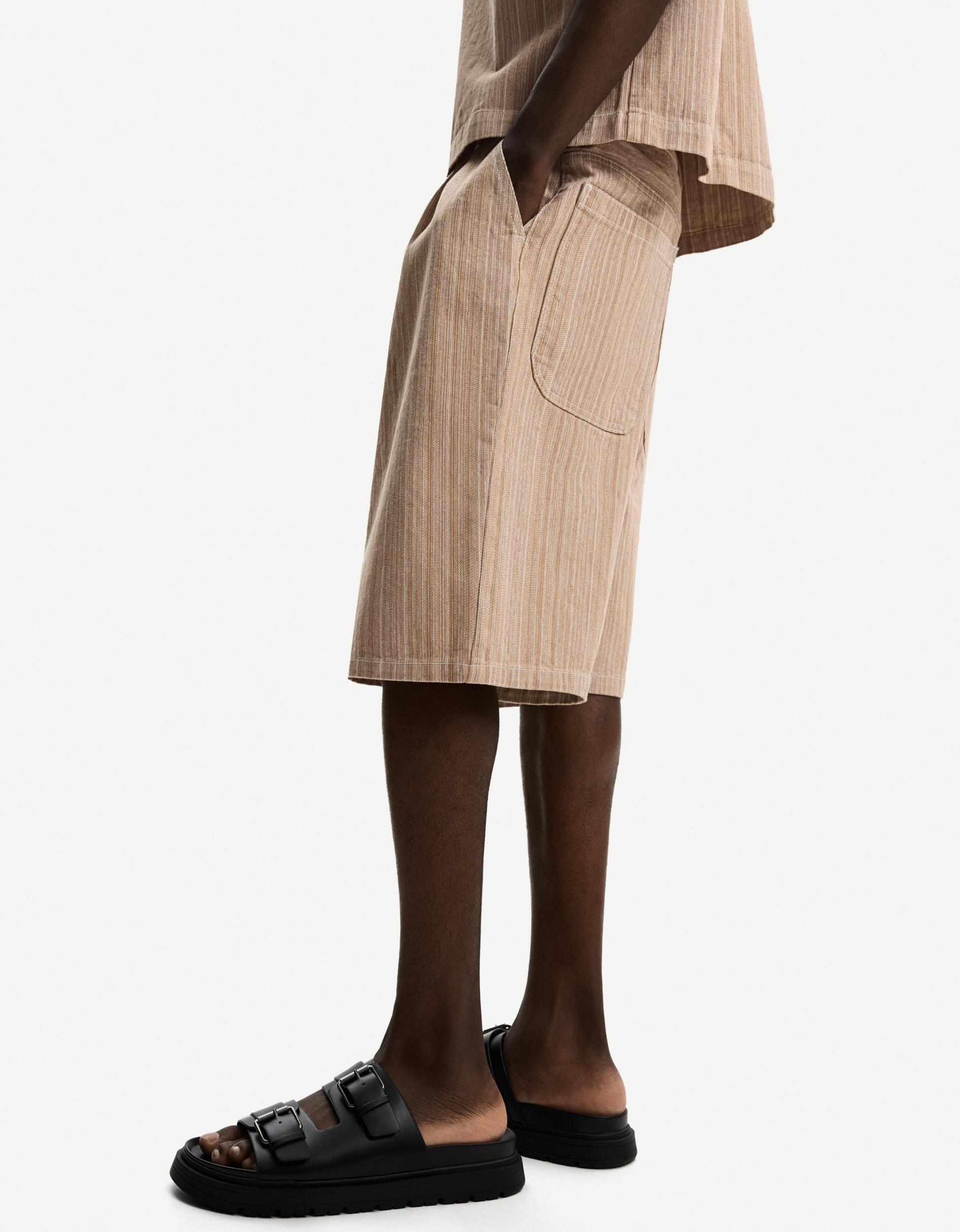 STRIPED COTTON-HEMP BERMUDA SHORTS