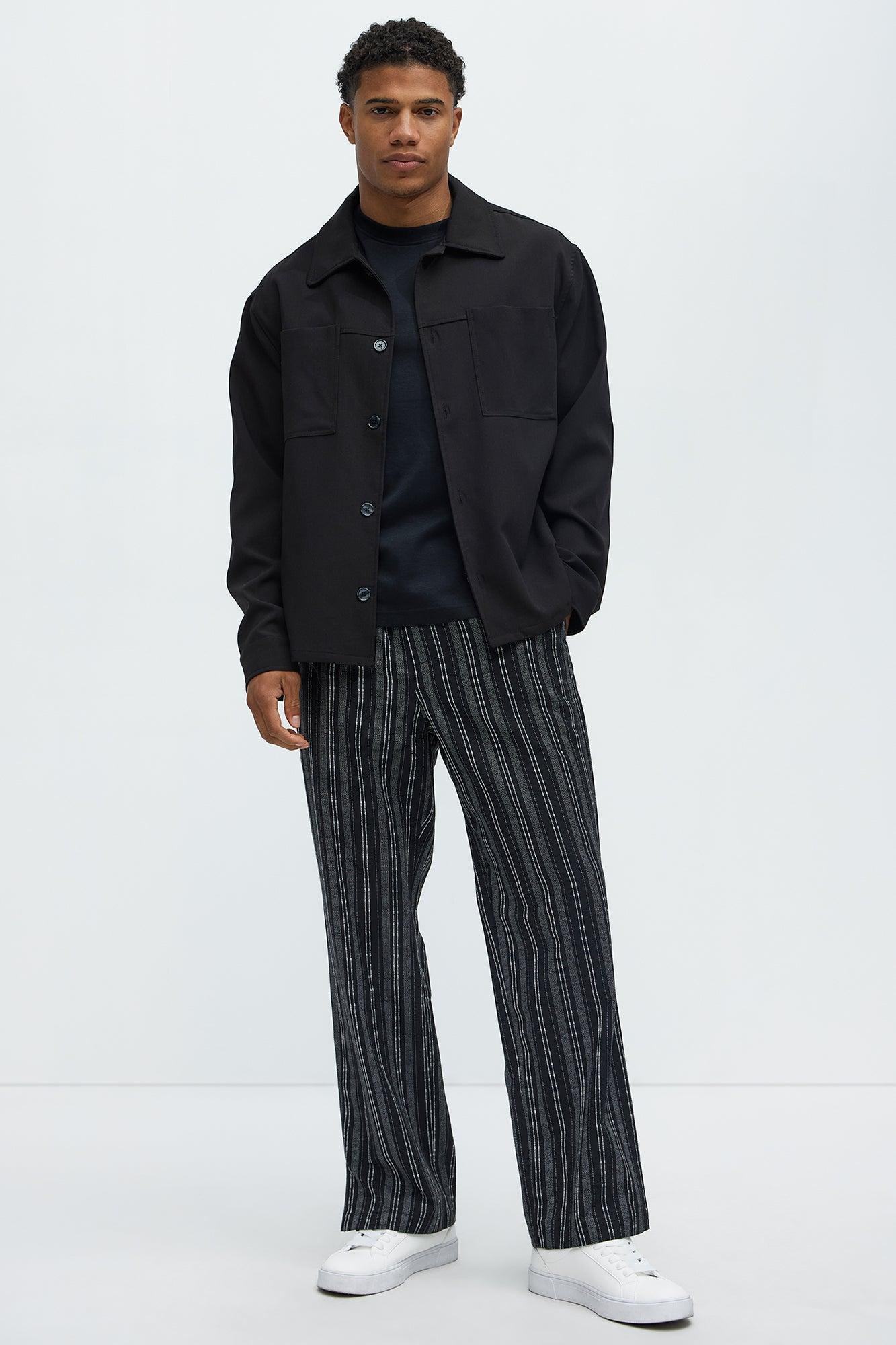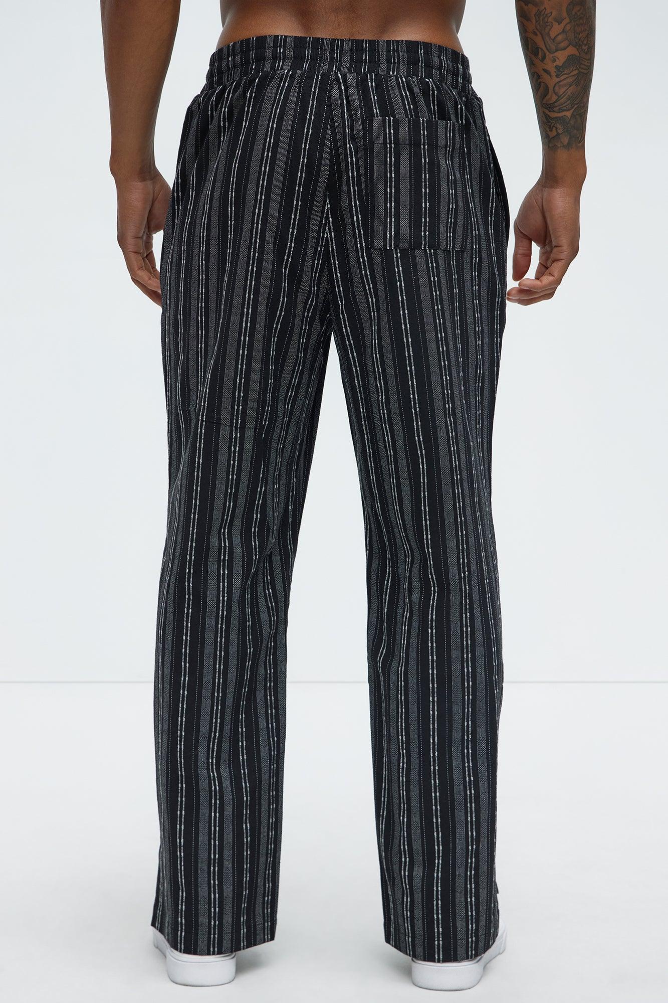 Striped Down Straight Pants - Black/combo
