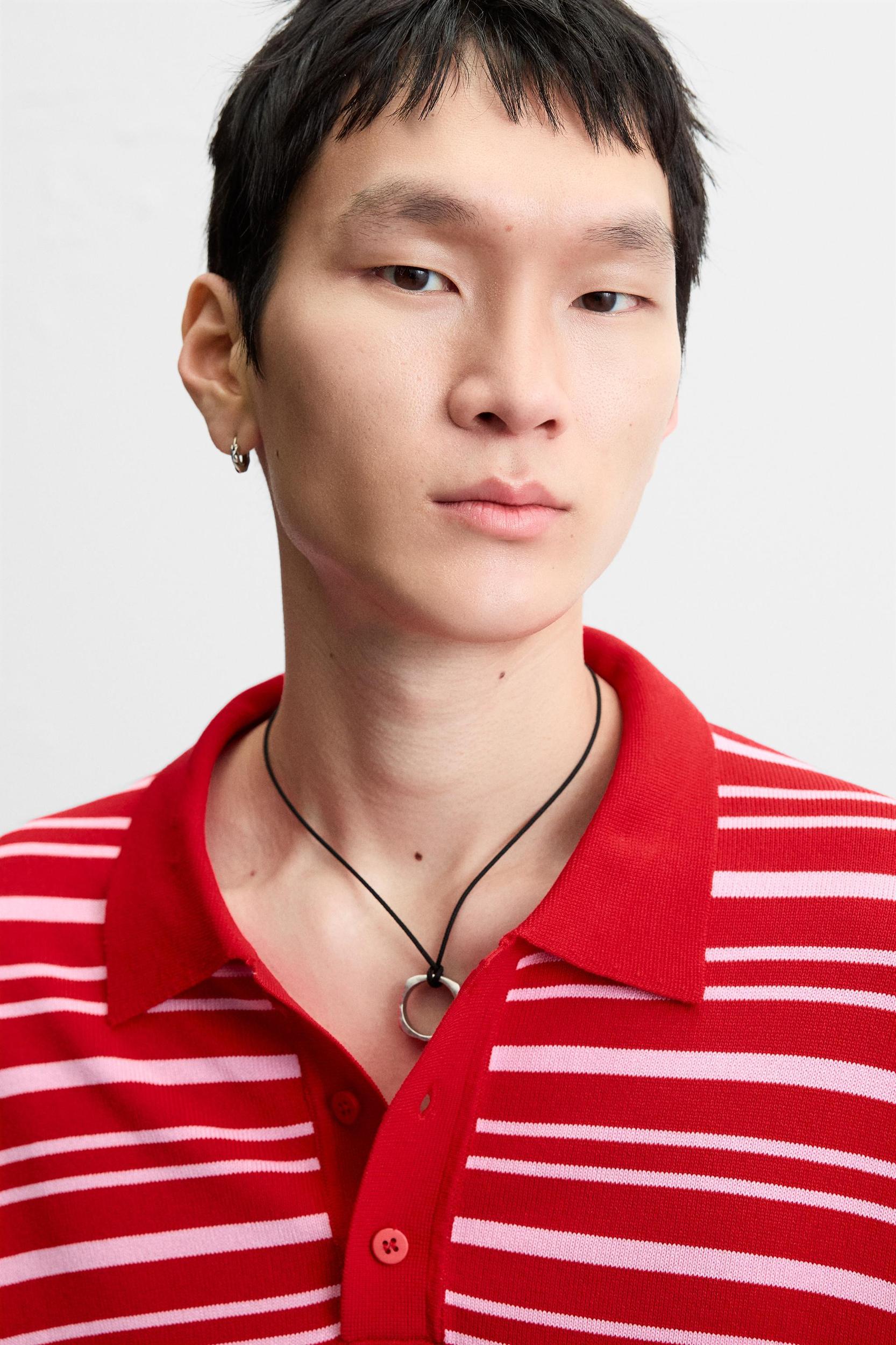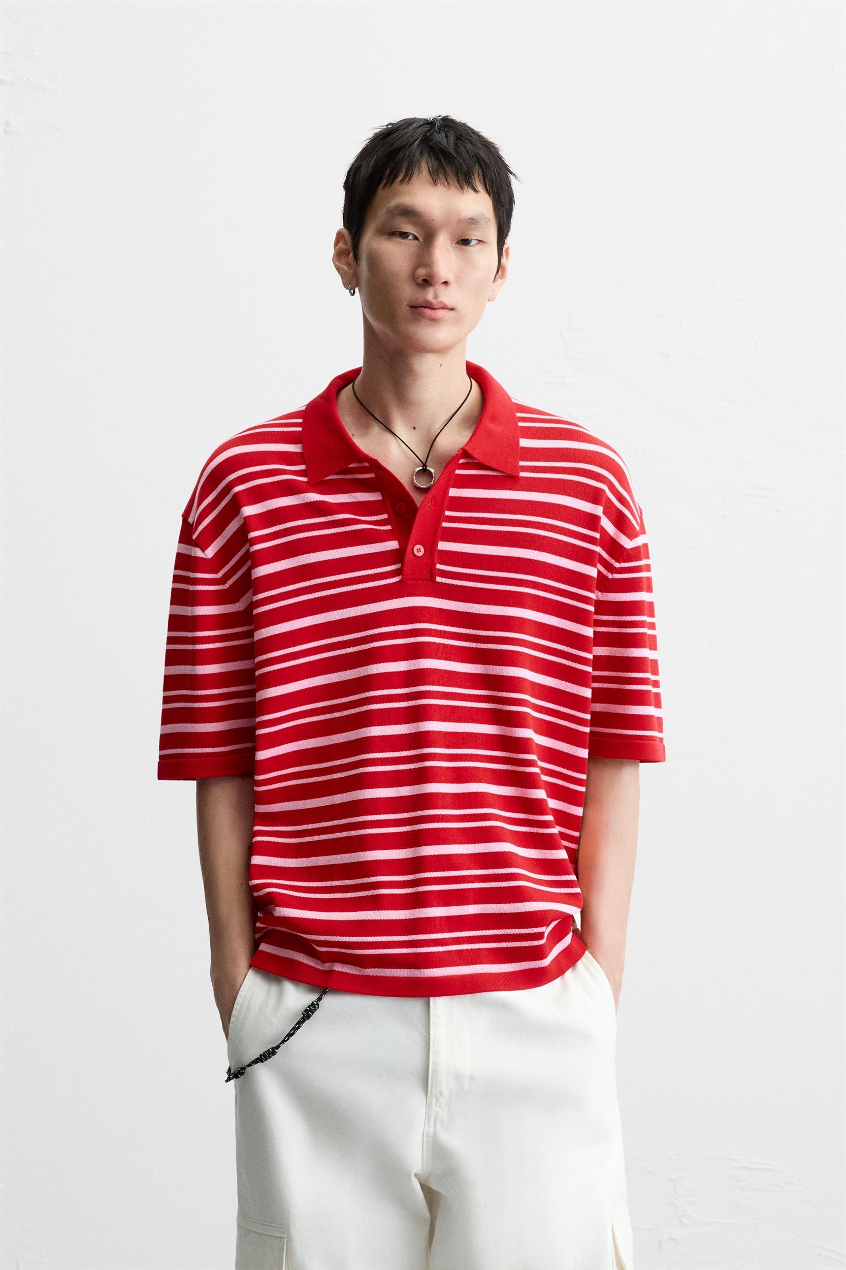 STRIPED KNIT POLO SHIRT