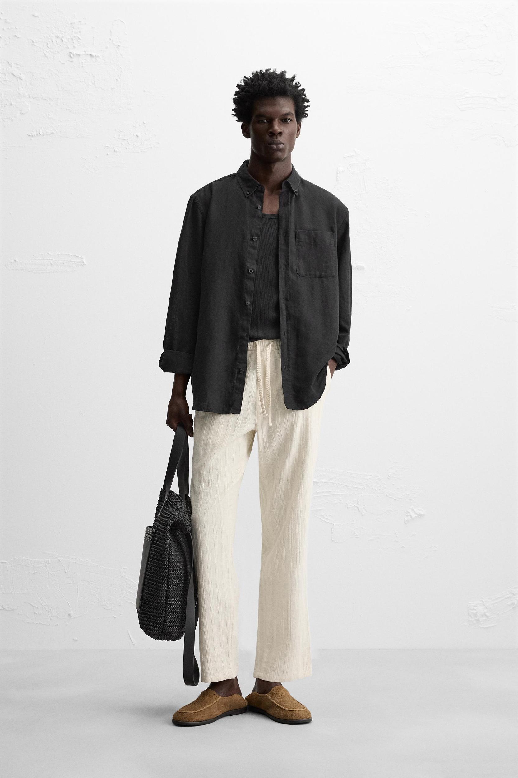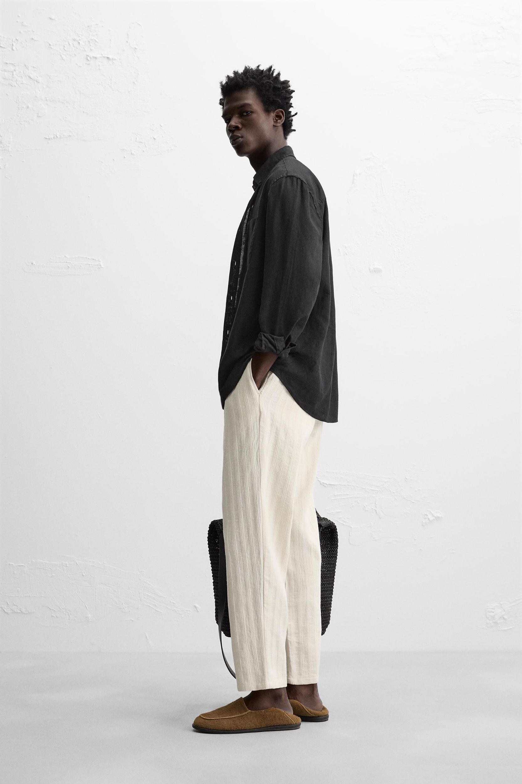 LIMITED EDITION STRIPED COTTON LINEN TRENCH COAT